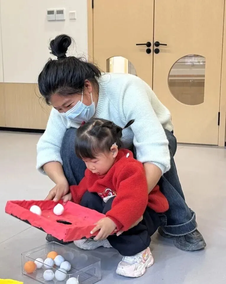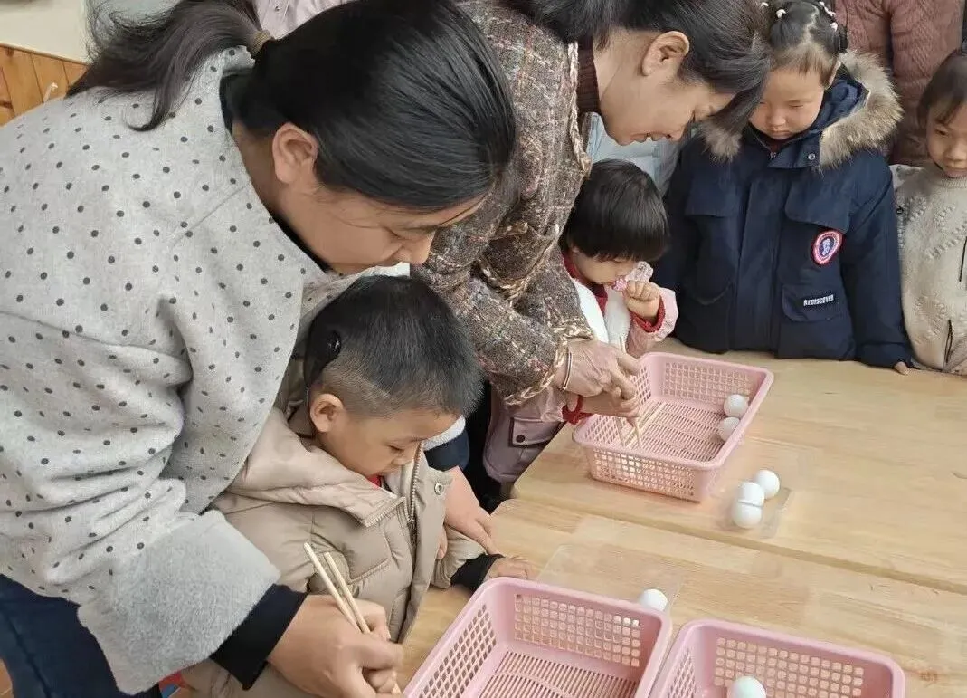 乒乓球化身圆滚滚的“元宵”,家长与宝贝携手用筷子夹起3枚乒乓球。在耐心与配合中,宝贝们锻炼着手眼协调能力,成功赢取专属贴纸。在趣味互动中感受节日温馨,共度欢乐时光。