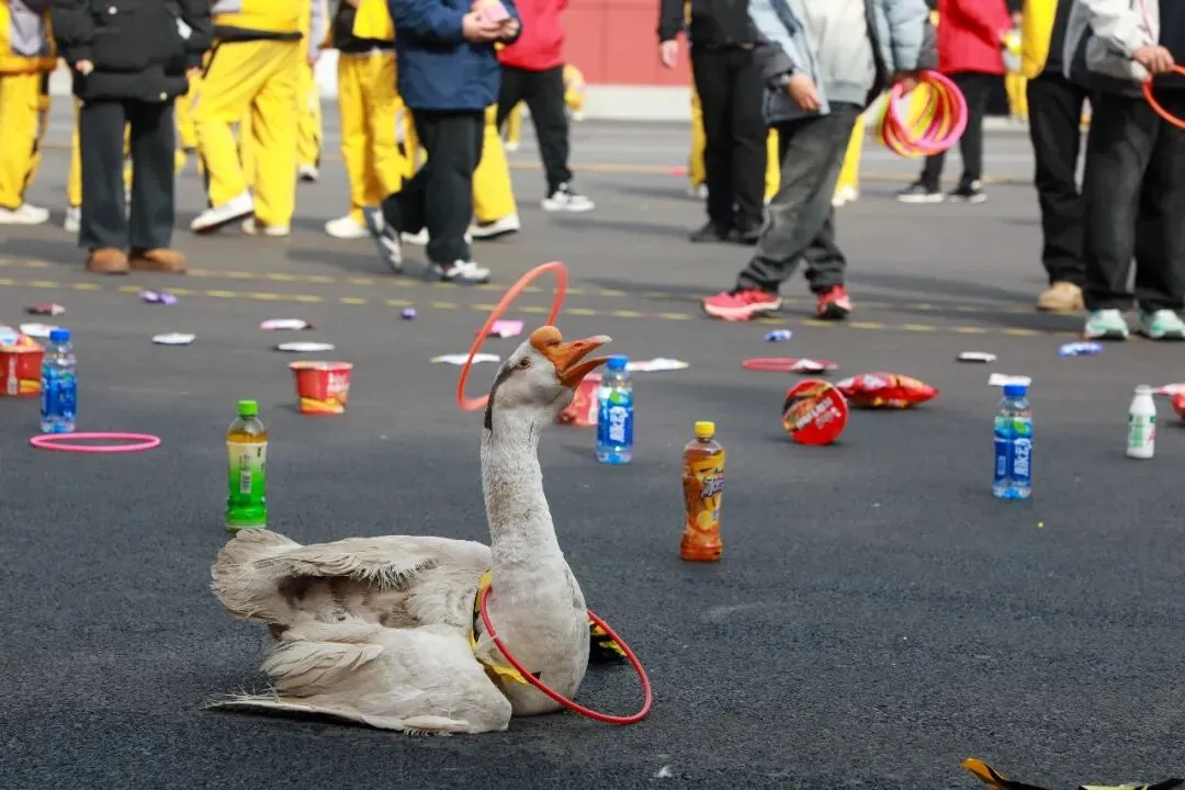“哇!套中鸭子了!”套圈区永远是快乐的聚集地。但今天的“重磅明星”无疑是那几只活蹦乱跳的鸡鸭。每当有“幸运儿”套中,现场便爆发出羡慕的惊呼。