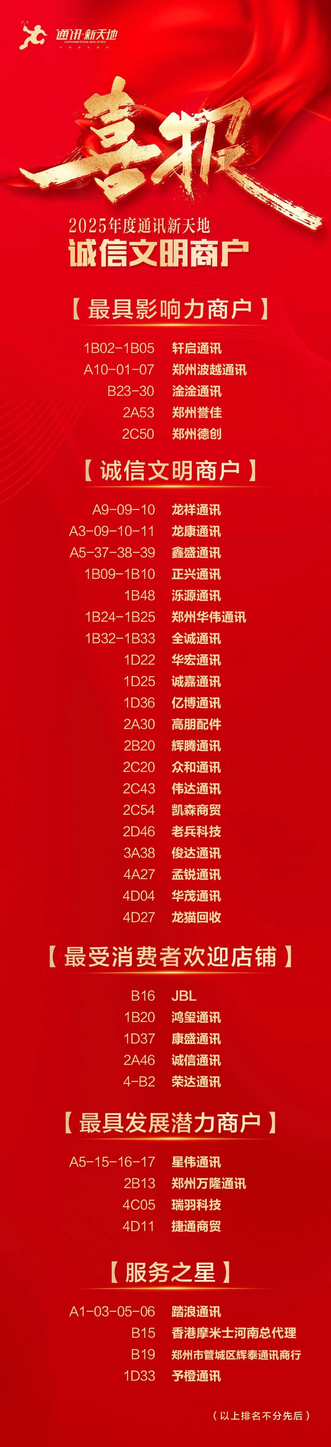 现将2025年度诚信文明商户获奖名单正式公布如下,欢迎广大商户及顾客朋友们监督反馈(排名不分先后):