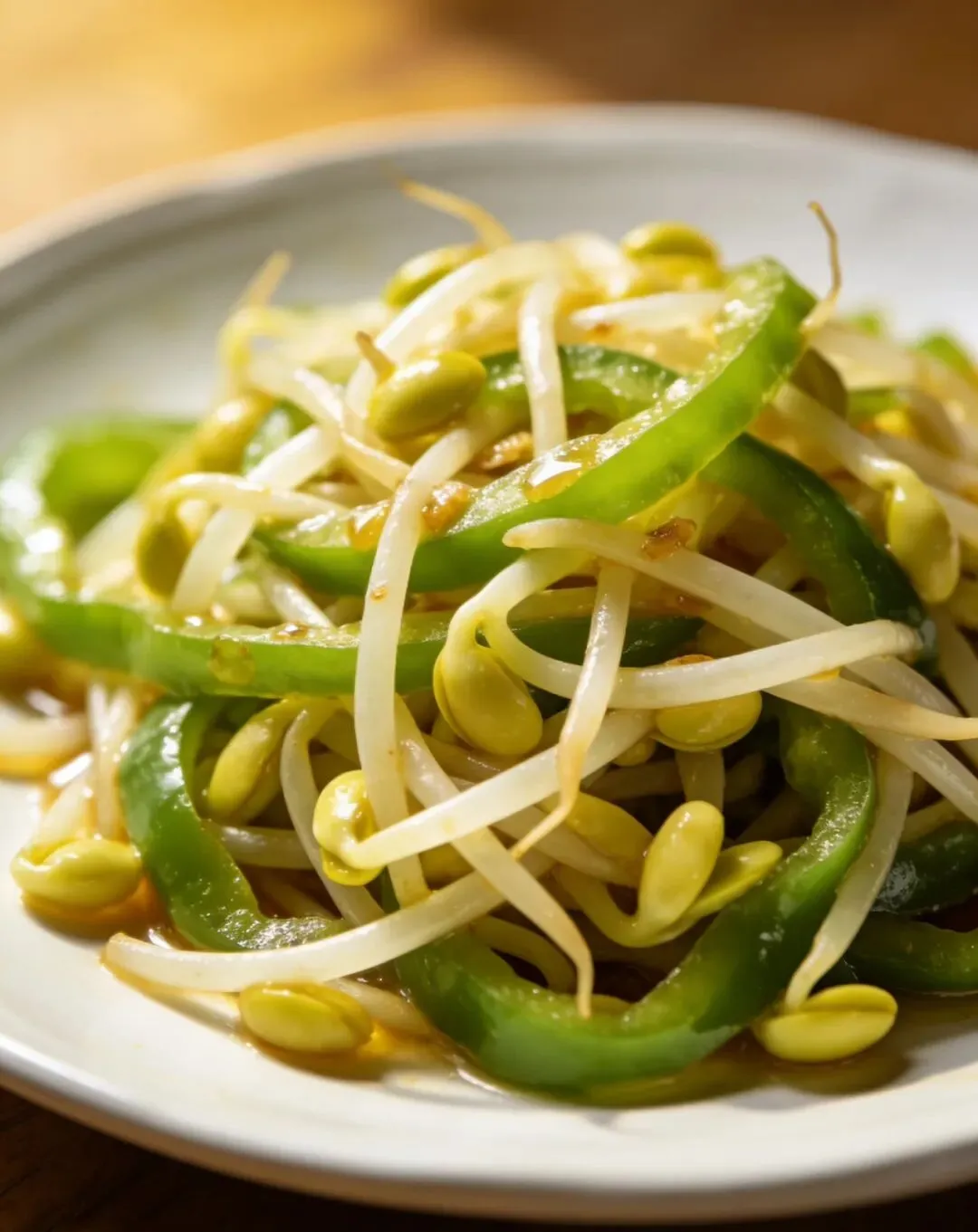 绿豆芽70g、青椒30g