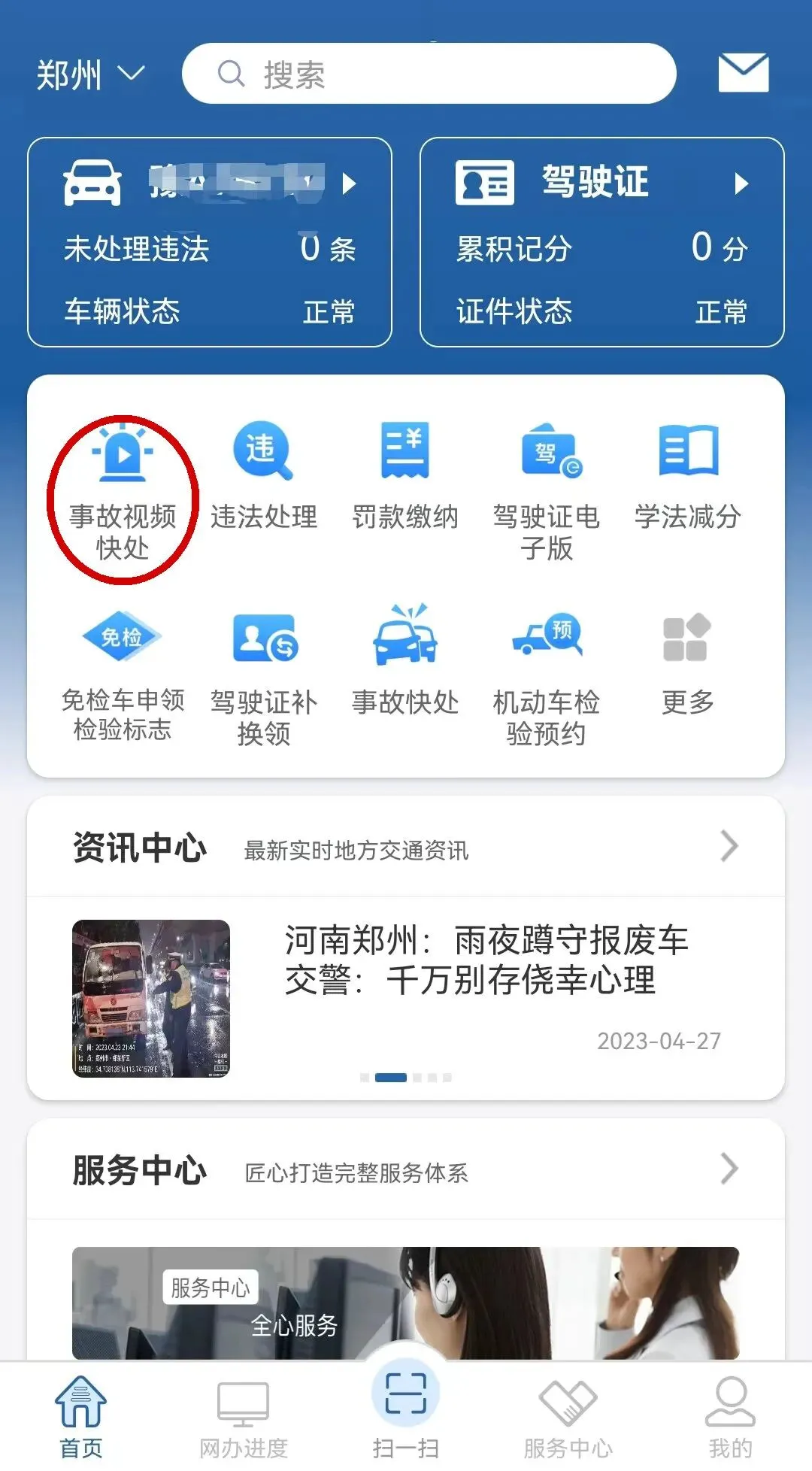 已在郑州市下载注册交管12123APP;
