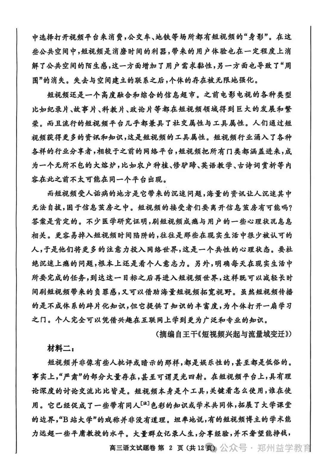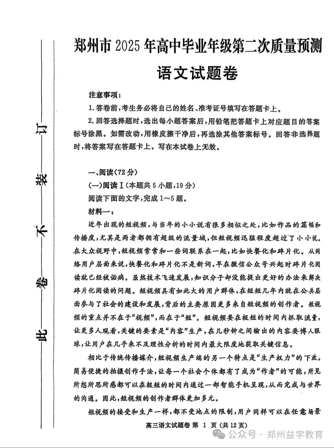 意力”的并非“短视频具有快餐化、碎片化的特点”,而是“‘内容’生产”。C 项说法绝