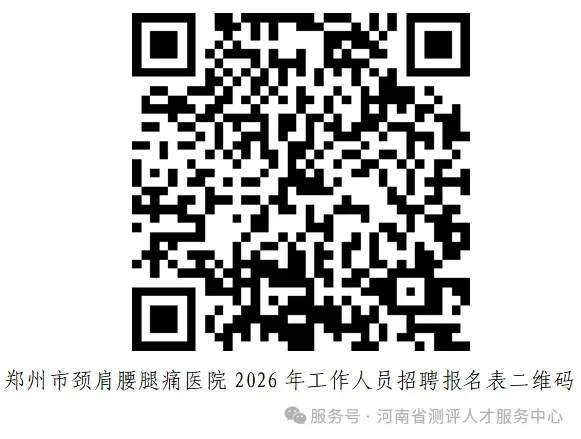 凡符合岗位招聘条件的应聘人员,自招聘信息发布之日起至2026年4月30日,使用手机微信扫描下方“郑州市颈肩腰腿痛医院2026年工作人员招聘报名表二维码”,进入网上报名小程序,按提示操作,在报名规定的时限内如实填写信息并完成提交。