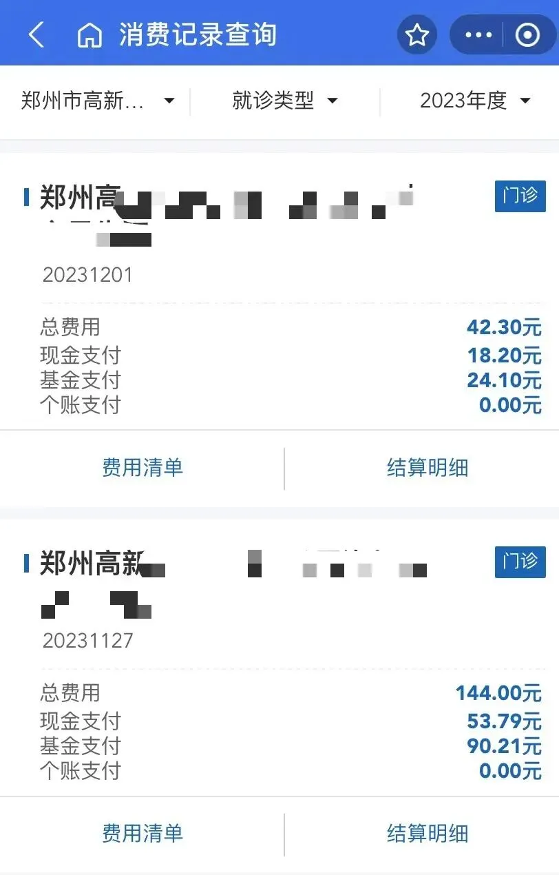 我想还是很多人不知道在社区医院,咱们老百姓看门诊是能用居民医保报销的,这是当时我两次门诊就医的报销单子。