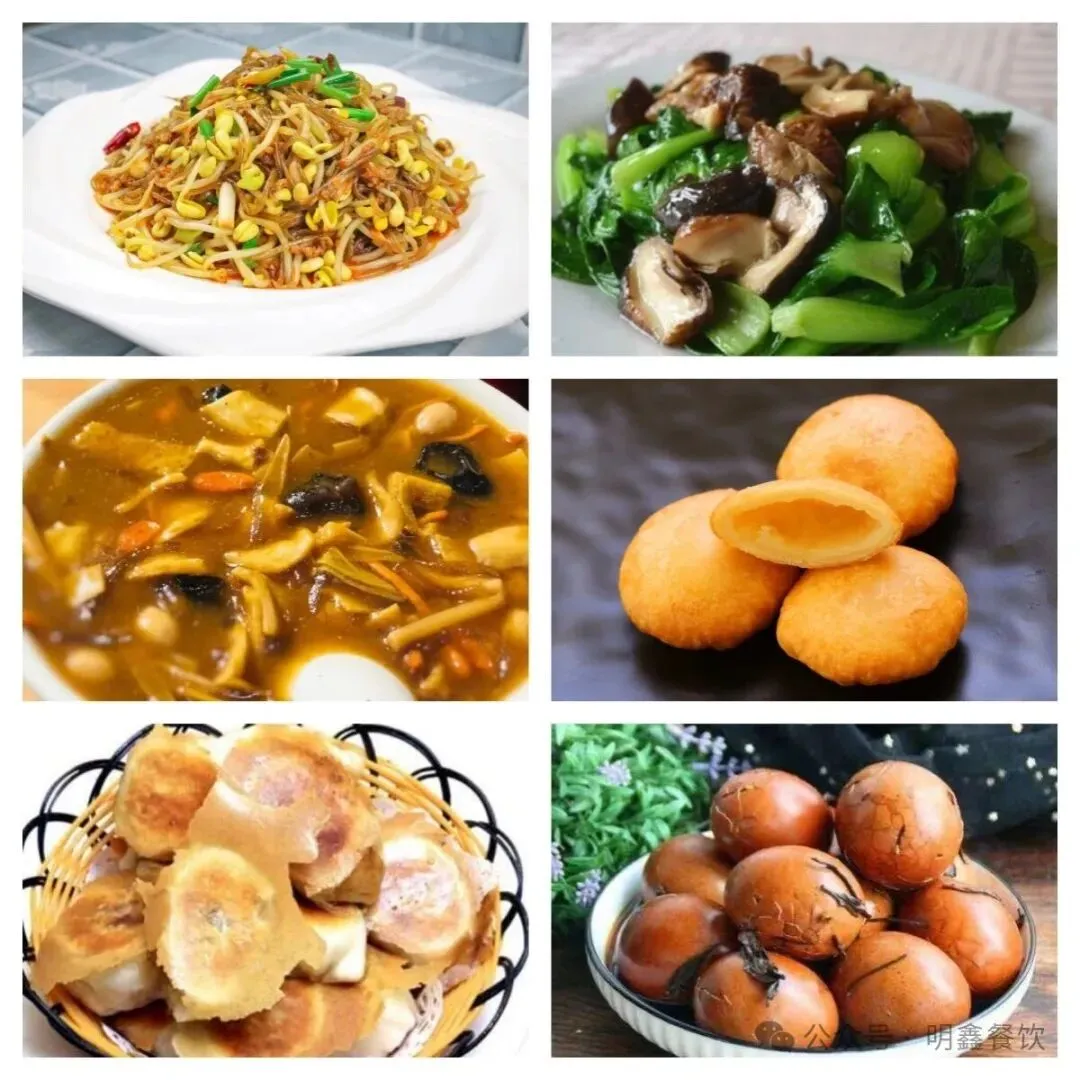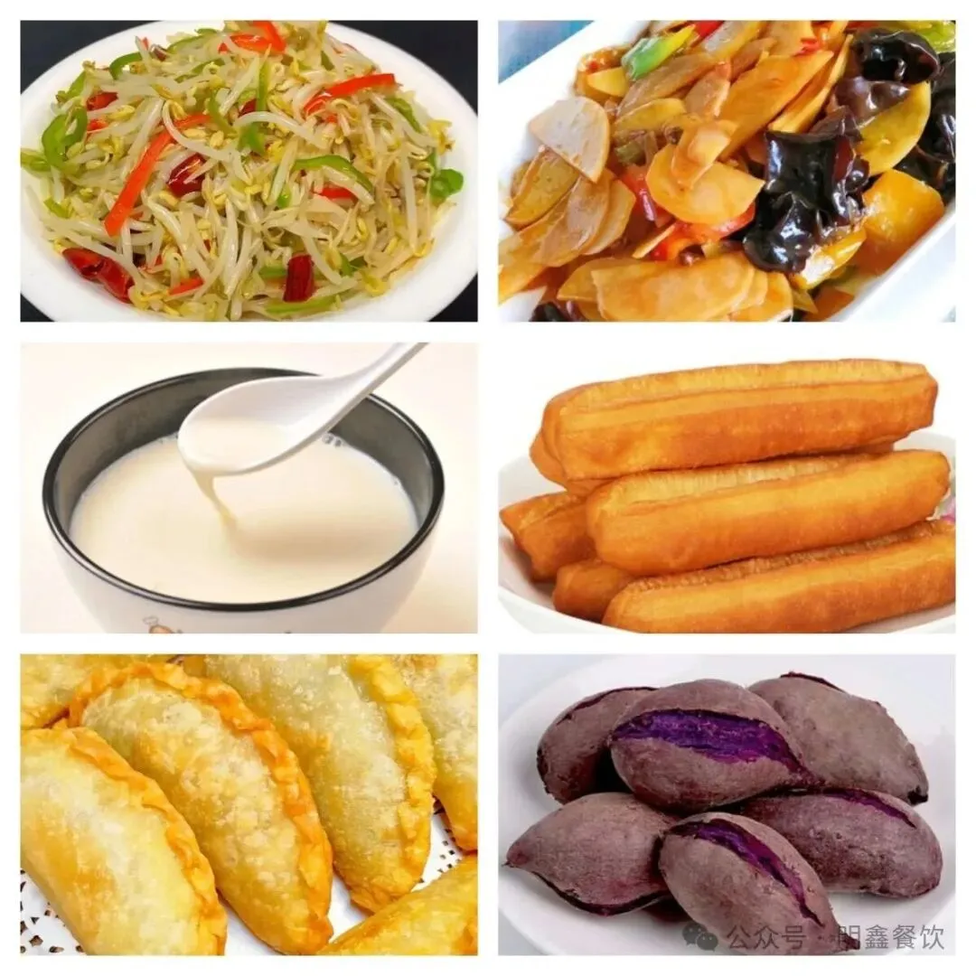 油条、手抓饼、糖糕、杂粮饼、鸡蛋饼、菜角、蒸紫薯、五香鸡蛋