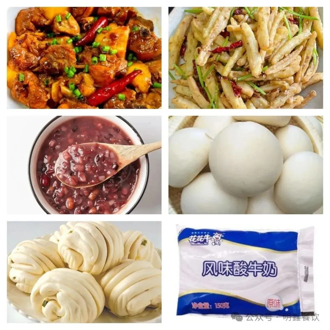 油馍头、手抓饼、糖糕、水煎包、酱香饼、蒸紫薯、五香鸡蛋
