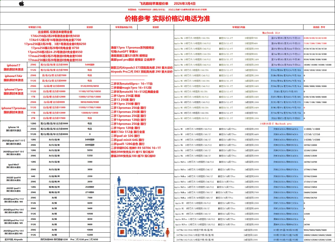 2026年3月4日渠道报价单 关注公众号查看每日报价