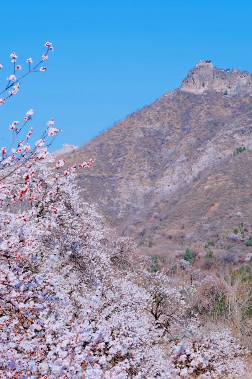 先说秋沟——这里被誉为“春赏桃花的最佳目的地”之一。3月中下旬,满山遍野的桃花、杏花竞相绽放,将太行山装点得格外温柔。粉的、白的、浅红的,层层叠叠,从山脚蔓延到山顶,如同为山峦披上了一件五彩的霞衣。