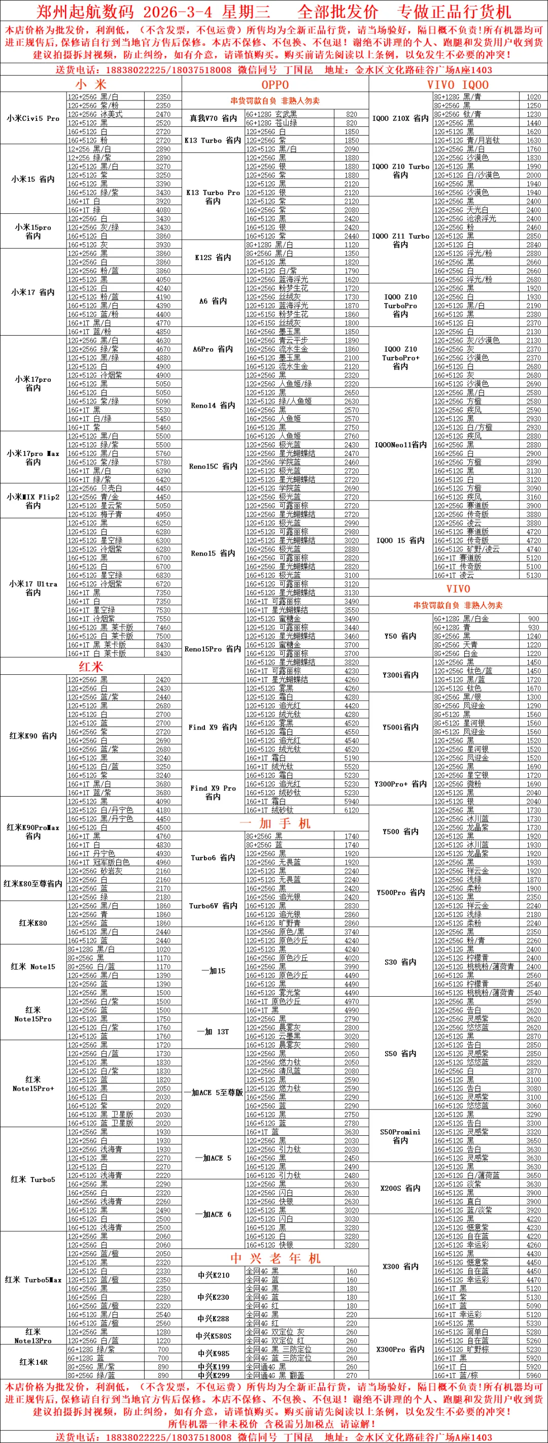 每天手机最新行情 请关注微信每日推送微信公众号:郑州起航数码公司地址:郑州市金水区文化路82号硅谷广场A座1403