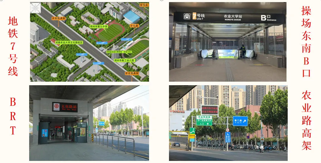 学校坐落于文化路农业路交叉口西北角,地铁、BRT、公交、农业路高架可直达九中,地铁7号线B口位于九中操场东南角。