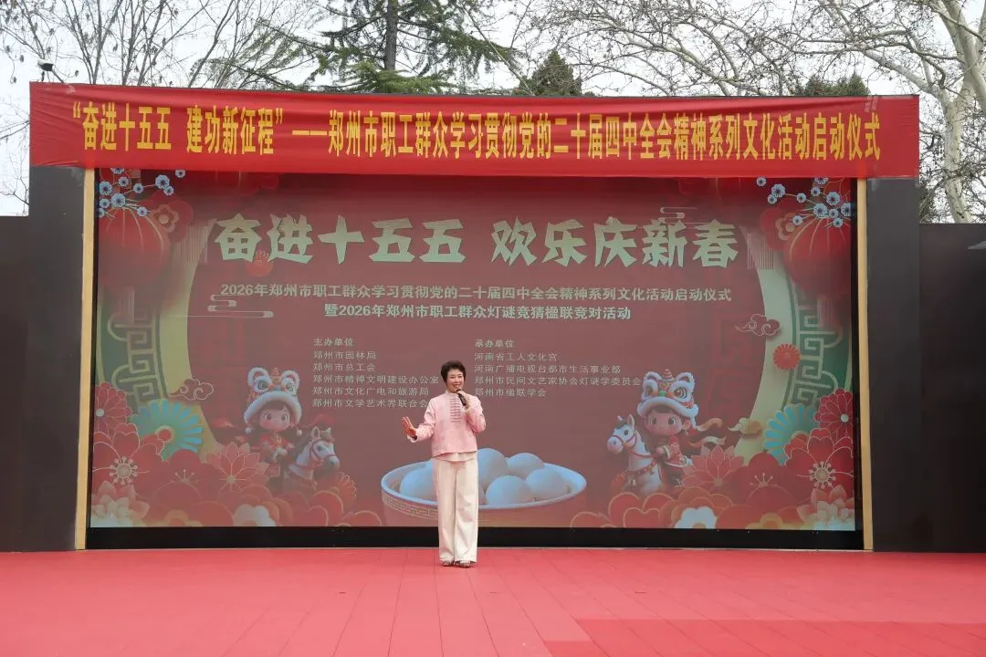 3月3日,农历正月十五,河南省工人文化宫内张灯结彩、欢声笑语,洋溢着浓厚的节日氛围。由郑州市总工会、市园林局、市精神文明建设办公室、市文化广电和旅游局、市文学艺术界联合会联合主办的“奋进‘十五五’ 建功新征程”郑州市职工群众学习贯彻党的二十届四中全会精神系列文化活动正式启动。