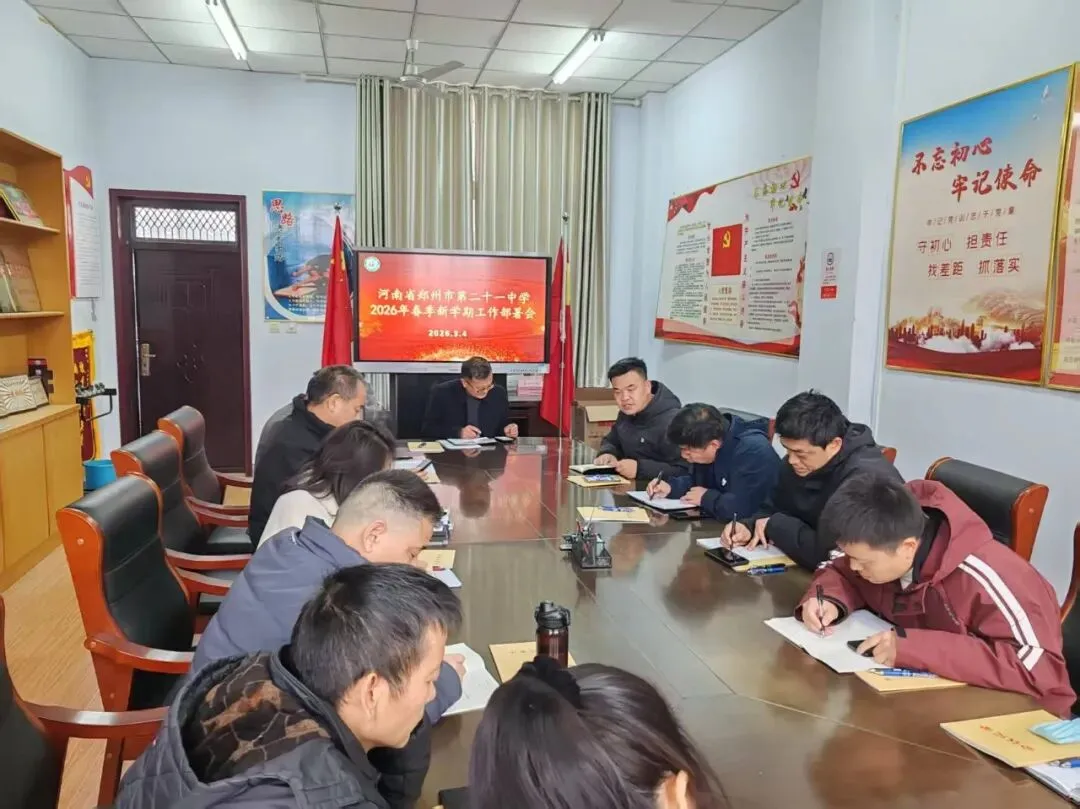 春回大地,万象更新。为确保新学期各项工作平稳、有序、高效开展,2026年3月4日,我校全体教师重返校园,隆重召开了郑州市第二十一中学2026年春季开学工作会议。会议由马群校长主持,围绕师德师风、教学工作、校园安全三大核心展开部署,为新学期教育教学工作高质量开展锚定方向、凝聚力量。
