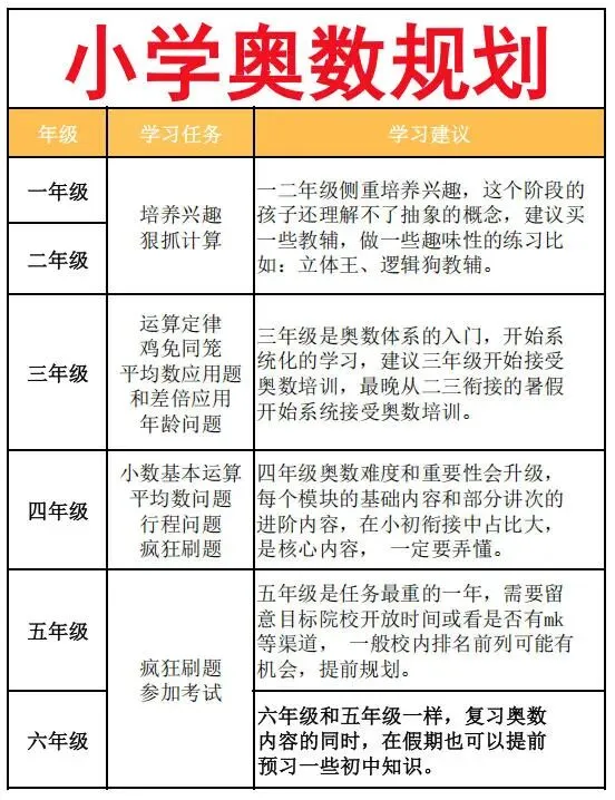 - 数学:校内知识约占 30%,主要为基础运算与简单应用题;70%为奥数与初中衔接内容,如:七年级的方程、不等式、函数初步等。