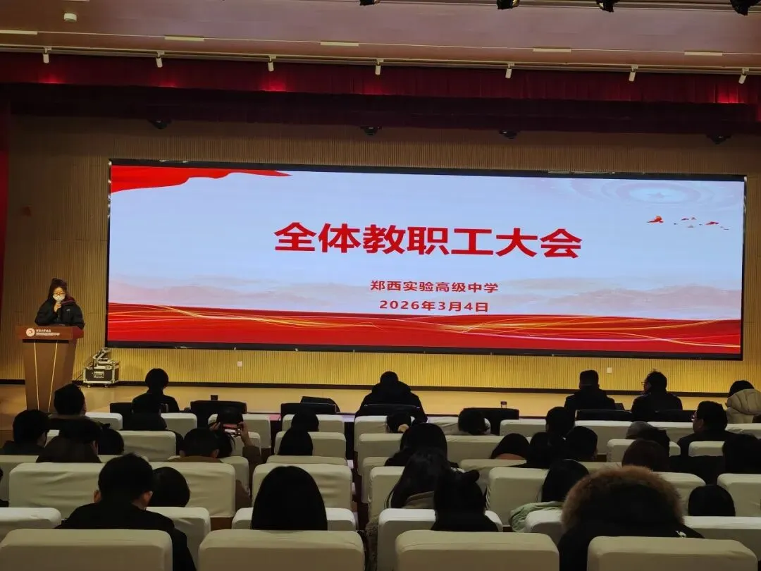 春回大地,万物竞发。为确保新学期各项工作平稳有序、高效推进,郑州市郑西实验高级中学于3月3日至4日接连召开班主任培训会、全体教职工大会及教研组长会,围绕班级管理、教学教研、校园安全等核心工作进行全面部署,以“一盘棋”的全局思维和“开局即决战”的奋进姿态,拉开新学期序幕。