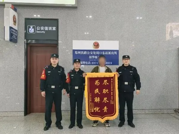 春运旅途匆忙,旅客遗失物品时有发生。2月22日,旅客张女士在周口东站候车时不慎遗失手机和斜挎包,焦急万分。接到求助后,周口东警组民警迅速行动,调取监控、走访排查,最终成功找回遗失物品并交还失主。2月25日,张女士的父亲专程赶到车站,将一面写有“尽职尽责 为民解忧”的锦旗送到民警手中。锦旗虽轻,却承载着群众对铁警工作的信任与赞誉,也见证了民警在平凡岗位上的不凡担当。