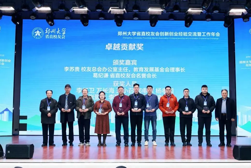 会议期间,郑州大学省直校友会副秘书长、明天建设集团董事长王小召荣获校友会颁发的“卓越贡献奖”。该奖项旨在表彰在过去一年中,为校友会发展、学校建设及社会服务作出突出贡献的校友代表。王小召董事长凭借其在推动校友经济、助力校企合作、服务社会发展等方面的积极作为,获此殊荣,充分展现了明天建设集团在企业责任担当与校友情怀方面的深厚积淀。