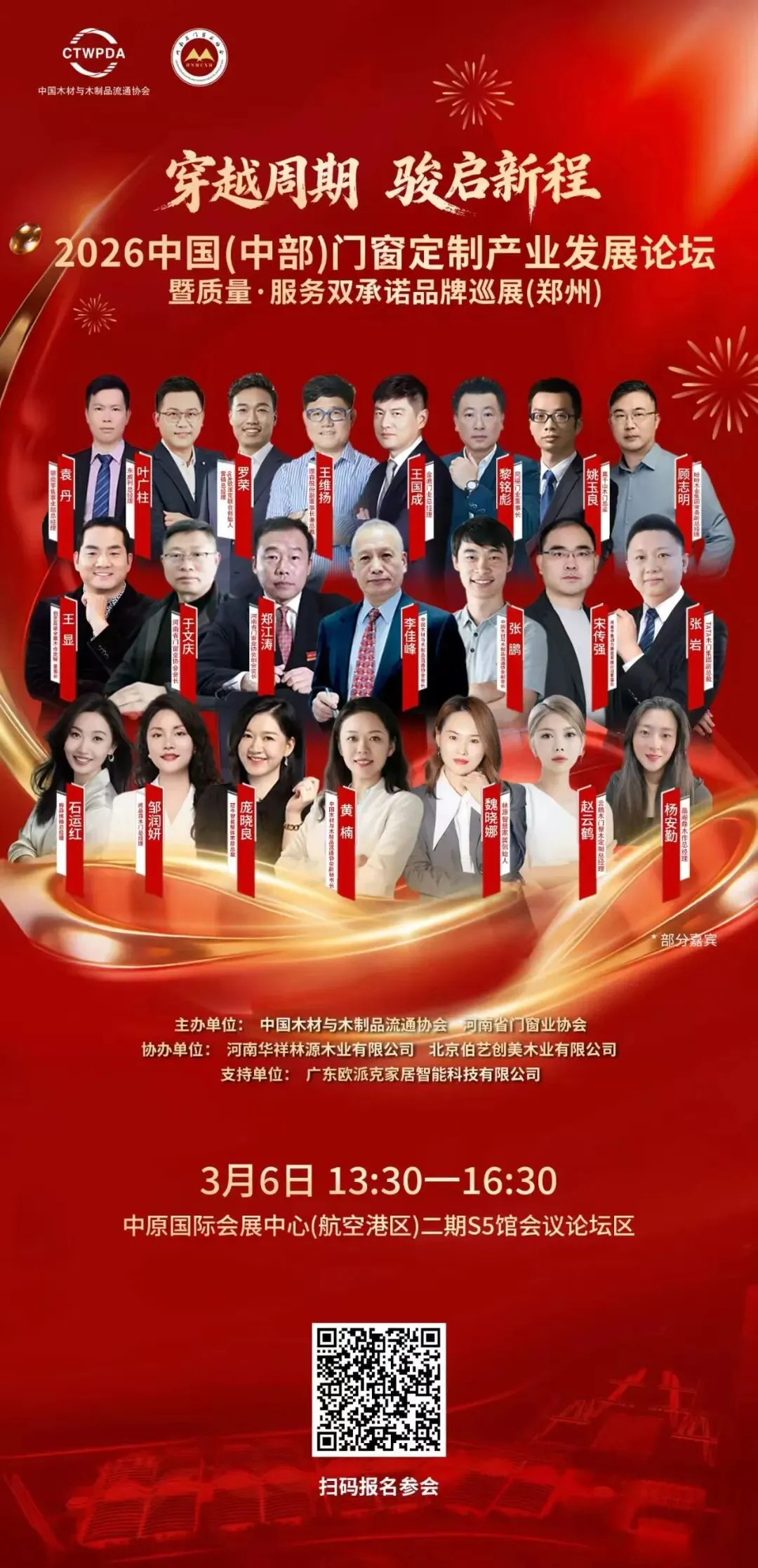 本次活动以破解周期困境、锚定发展航向为核心,搭建行业协会、门窗定制企业、经销商、设计师等群体的多元对话桥梁,为中部乃至全国门窗定制产业的可持续增长注入思想动能与实践路径。同时,现场发布【2026年全国门窗及定制家居企业产品质量、售后服务双承诺活动单位】,面向全行业荣誉揭晓获奖优质品牌。