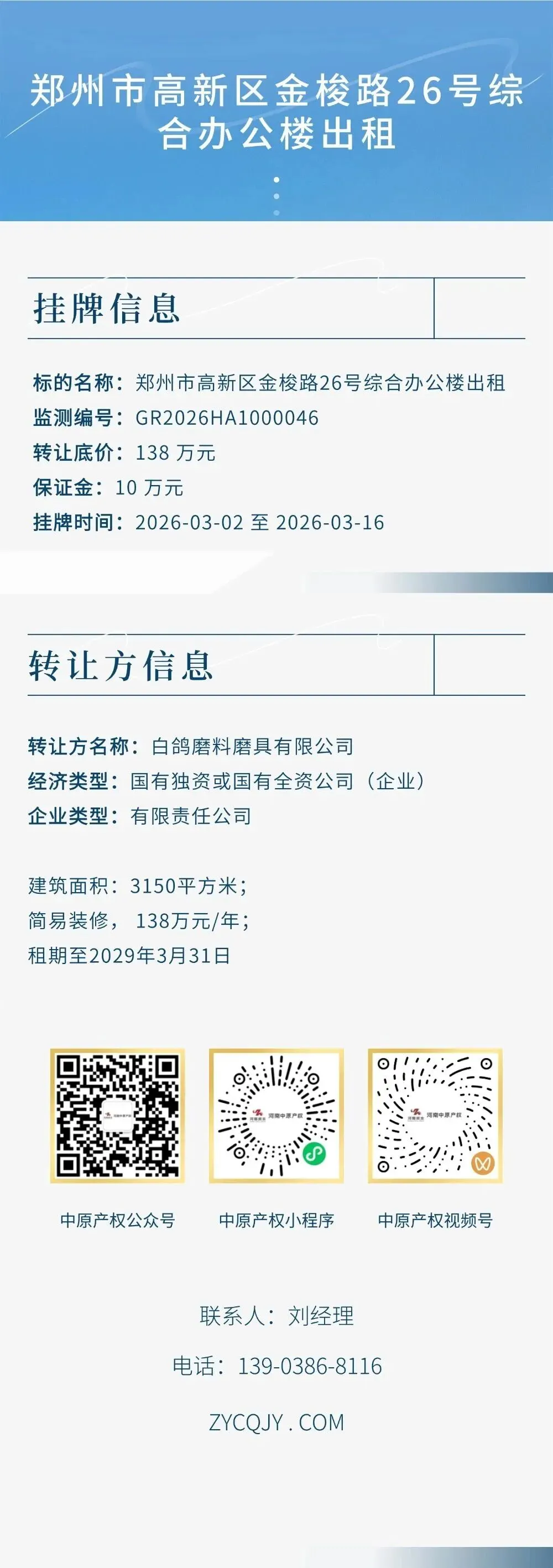 >【房产招租】郑州市高新区金梭路26号综合办公楼出租