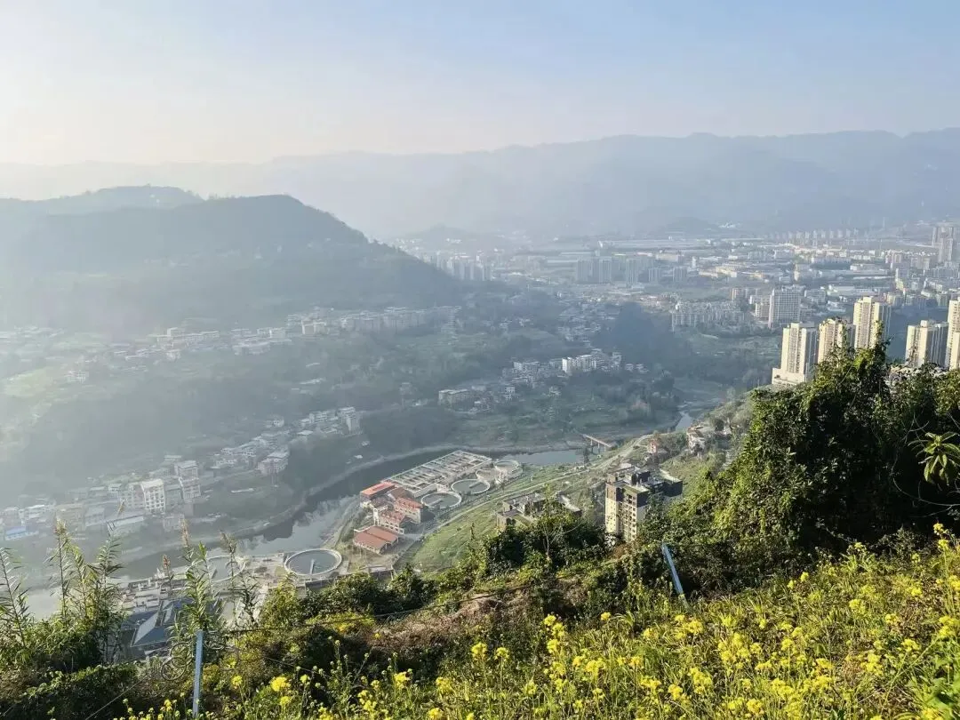 结果,一进入重庆地界,画风突变!山上居然冒出了黄灿灿的野花(看着像迎春花,但比河南的更饱满),还有刚刚开放的油菜花,连路边绿化带里都藏着绽放的花朵。