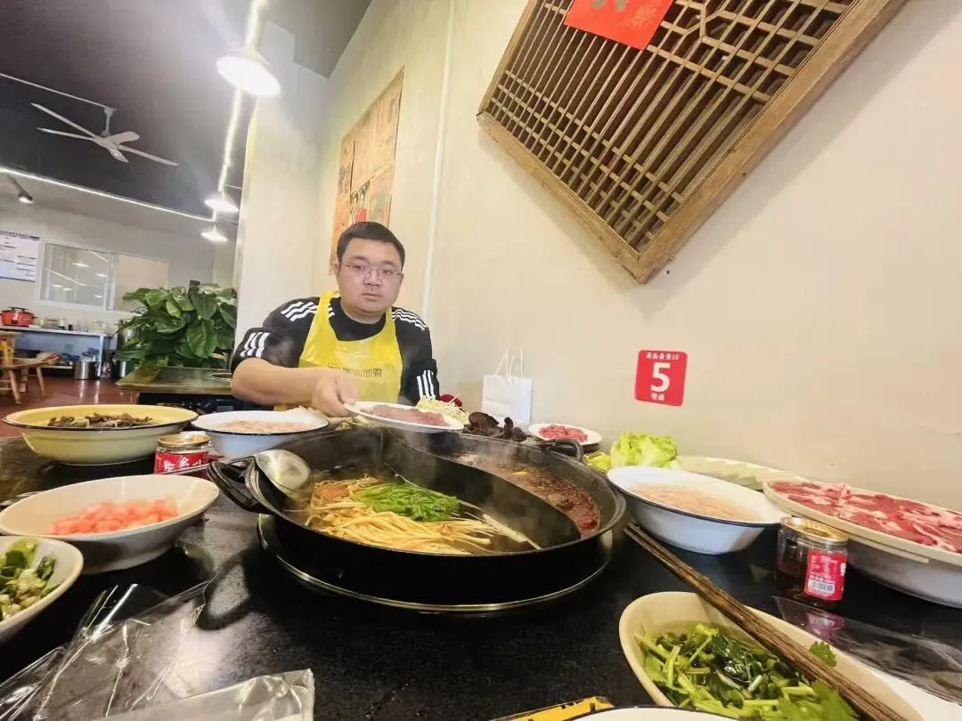 先说火锅。红油翻滚,看着唬人,但入口是那种醇厚的麻辣鲜香,辣得柔和、香得浓郁,完全在我的接受范围内。鸭血爽滑入味,真是美味。最让我这个河南人意外的是蘸料——没有熟悉的麻汁,而是油碟。本以为会腻,结果它反而中和了辣味,让麻辣的层次感更丰富了。