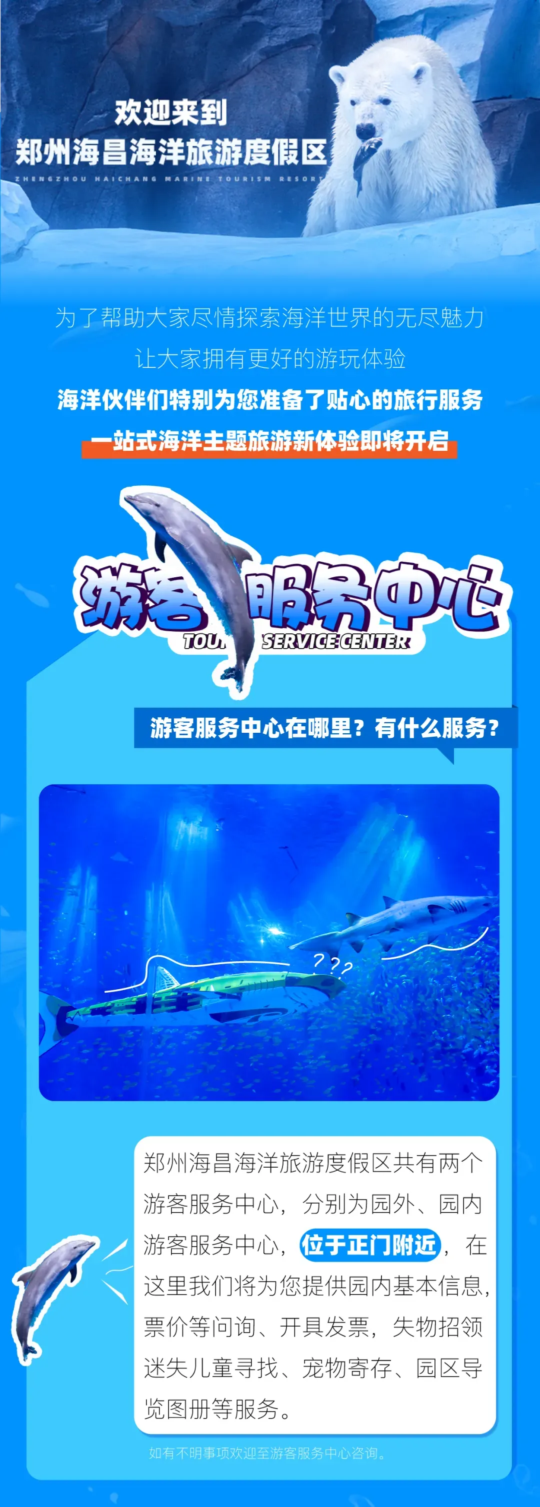 商丘早上6:00出发,2小时直达郑州中牟海昌海洋公园度假区,办理团队签单后统一入园,入园成人请携带身份证件,园区自行游览,下方有演出时间节目单实时更新,请根据每天节目演出依次观看。全程不含餐,下午17:00集合返程。(宁陵睢县民权高速口上车,如需县城接送每人加20元)