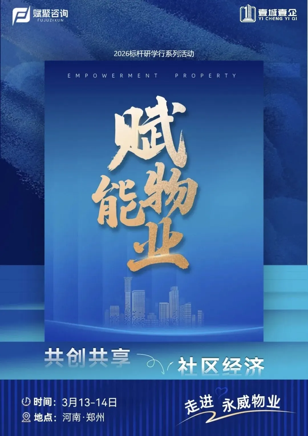 2026年3月13-14日,赋聚咨询重磅推出郑州永威物业标杆研学,带您直击物业界“胖东来”的成功内核,拆解98.7%物业费收缴率的底层逻辑,复制高品质物业服务的落地方法,让您从学习标杆、拆解标杆,到成为标杆!
