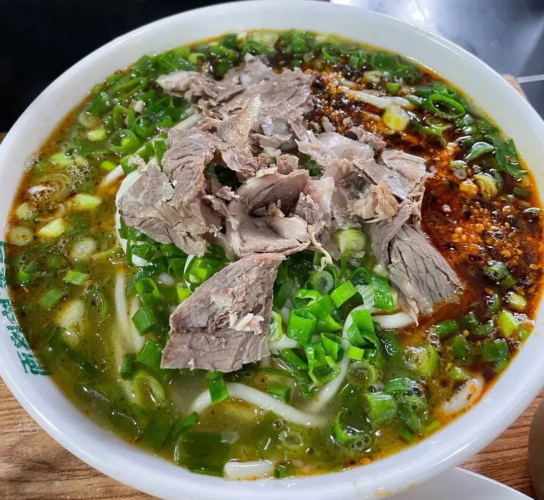 招牌羊肉羊杂汤,分量十足,羊肉给的那叫一个多,肉质鲜嫩,汤头浓郁咸鲜,再往里加点辣椒油跟葱花,热气腾腾,冬天的早上来上一碗简直绝了。