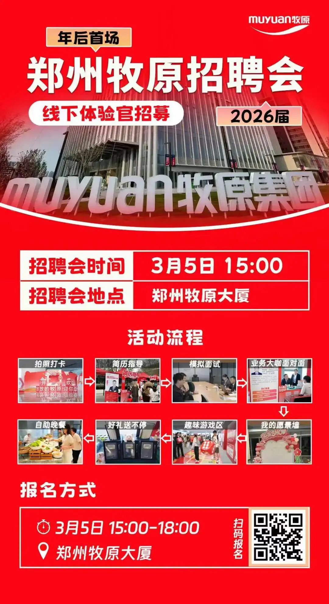 各位2026届的同学们看过来!牧原集团年后首场线下招聘会,就在郑州牧原大厦,等你来体验!