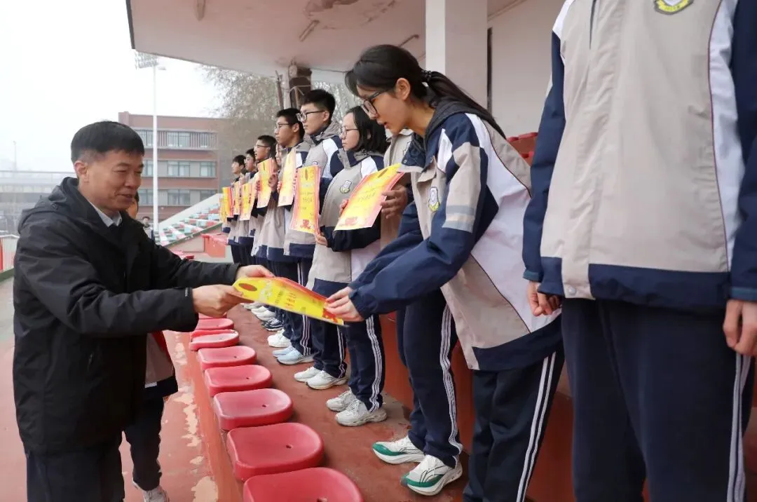 表彰环节彰显榜样力量,校长陈晓宣读《郑州九中2025-2026学年上学期表彰决定》,对上学表现突出的先进集体予以表彰。随后,学校依次为获奖集体和先进个人进行颁奖,获得文明班集体和优秀团支部班级的学生代表及优秀社团学生代表依次上台领奖。