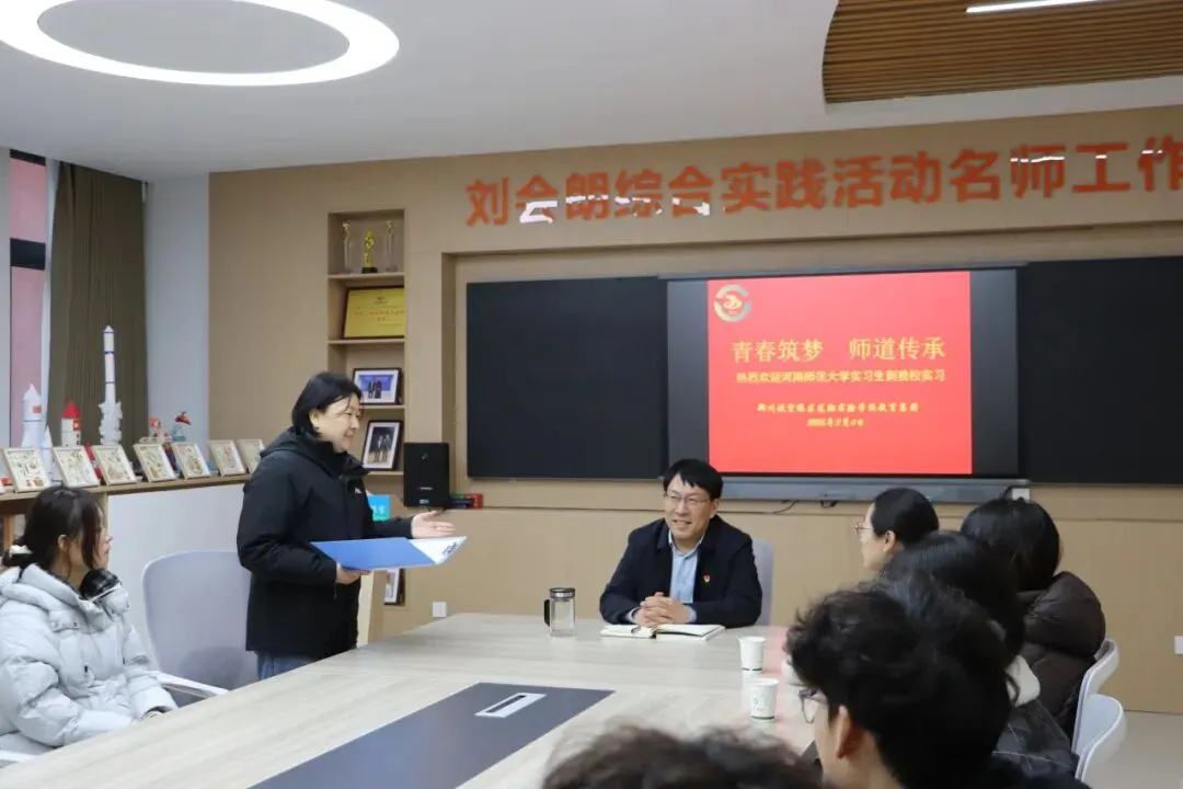 刘会朗向实习生们全面介绍了学校办学条件、发展规划与育人目标,更以长辈与教育者的身份暖心寄语:学校会把每一位实习生当作自己的孩子、未来的人民教师悉心培养,珍惜实践平台、深耕教学本领,用努力与热爱奔赴教育山海。