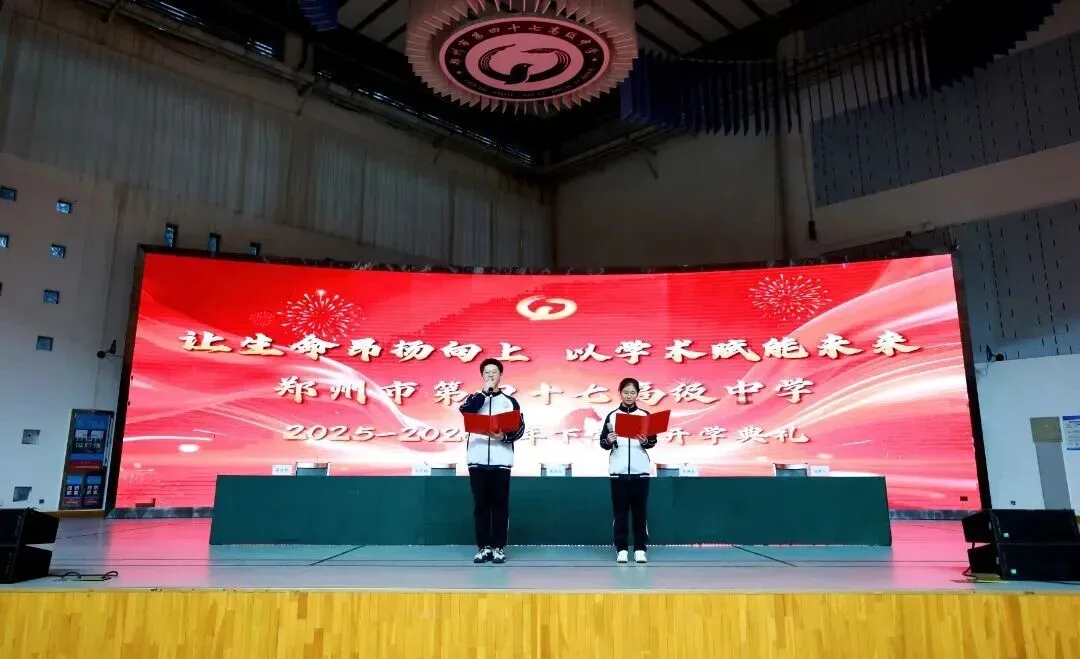 春启新程,向阳生长。此次开学典礼既是一次庄重的仪式,更是一次出发的号角。郑州市第四十七高级中学全体师生将以此次典礼为契机,怀揣梦想、笃行不怠,践行育人初心,深耕学术之路,让生命在奋斗中昂扬,让未来在拼搏中绽放,共同书写学校发展的崭新篇章。