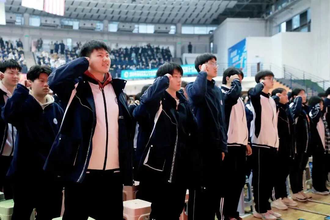 典礼在庄严的升国旗、奏唱国歌仪式中拉开帷幕,全体师生起立行注目礼,齐唱国歌,随后进行国旗下宣誓,铿锵有力的誓言回荡在体育馆上空,彰显着学子们的爱国情怀与奋进决心。紧接着,校旗冉冉升起,校歌嘹亮,全体师生共同唱响校歌,凝聚起属于四十七中人的精神力量。