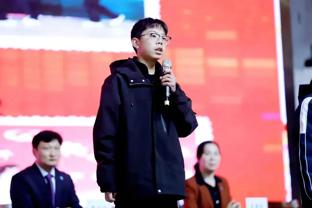 典礼特设「回望・成长」梦想盒启封环节。现场启封了同学们在上学期开学典礼投递的梦想卡,以此回望初心、检验成长。高一3班牛天宇、高二9班孙一旖、高三5班李明哲、国际部中美高三1班张静宜依次上台,结合自己的梦想卡片,分享成长感悟与新学期规划。随后,学生代表张歆婕、教师代表韩茜先后发言,分别表达了学子们的奋进决心与老师们的育人初心,尤其为高三学子送上冲刺祝福。