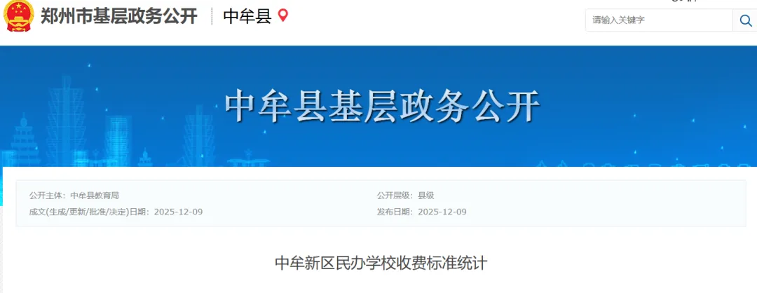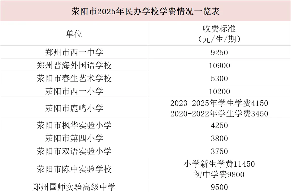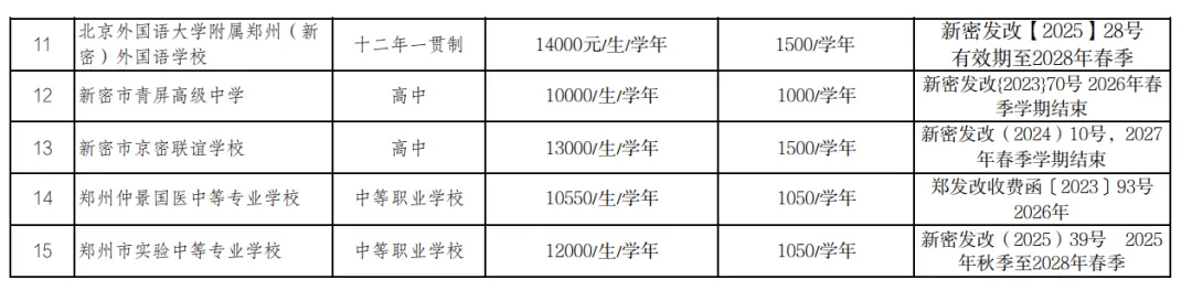 >河南省-郑州市2026春季开学收费标准!