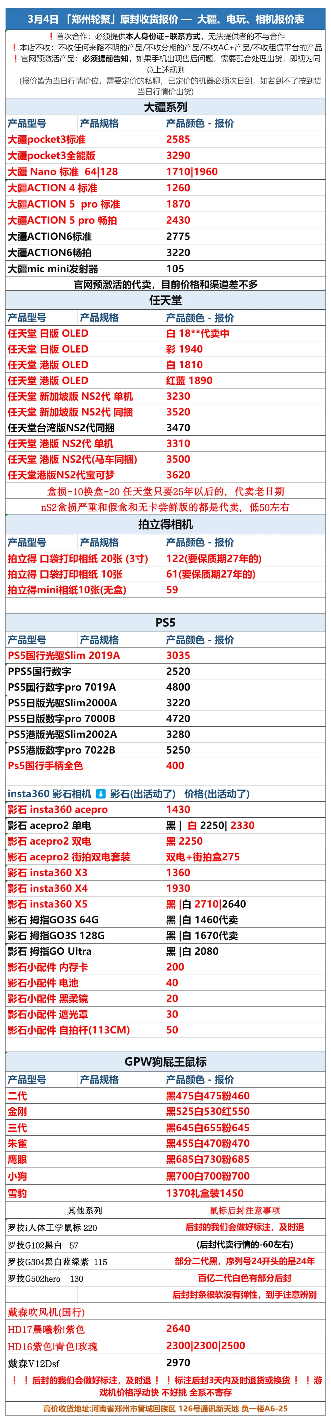 郑州轮聚通讯 2026年3.4日数码报价更新
