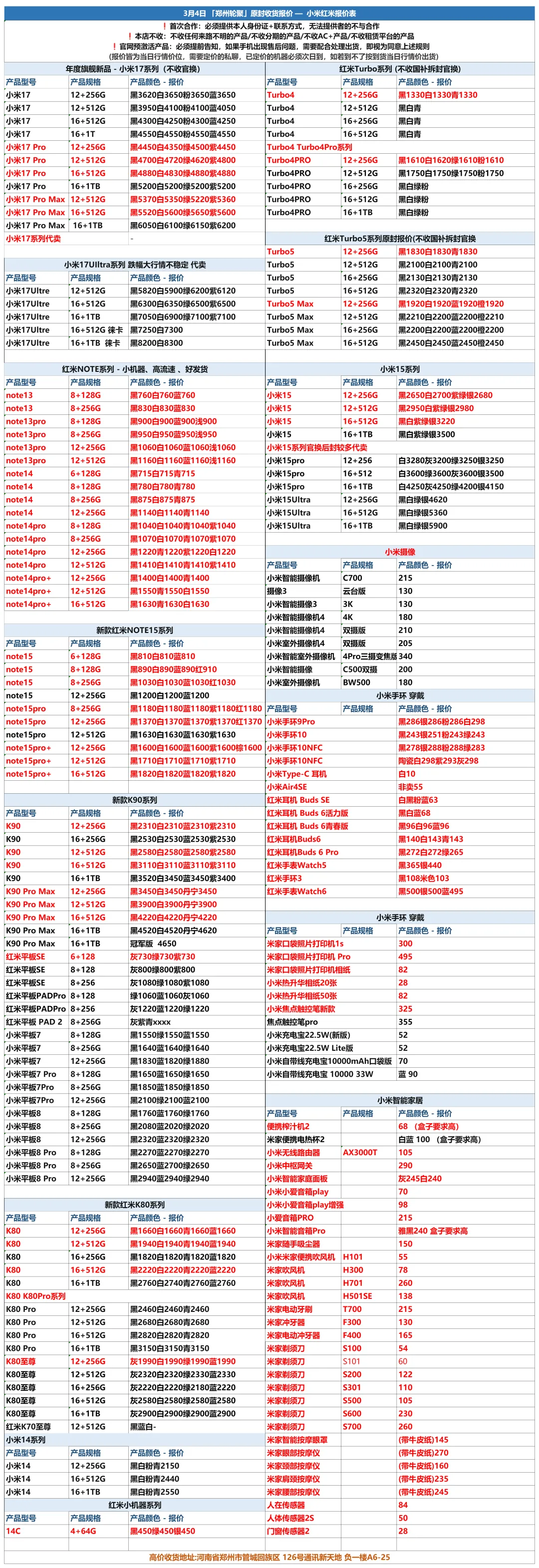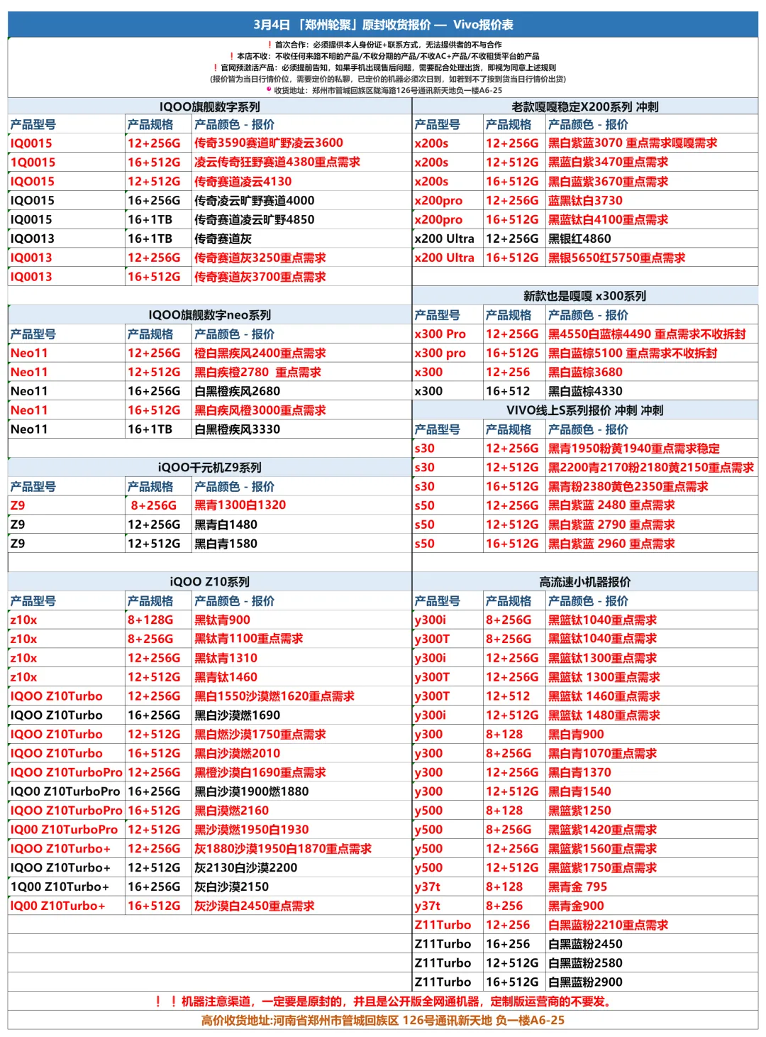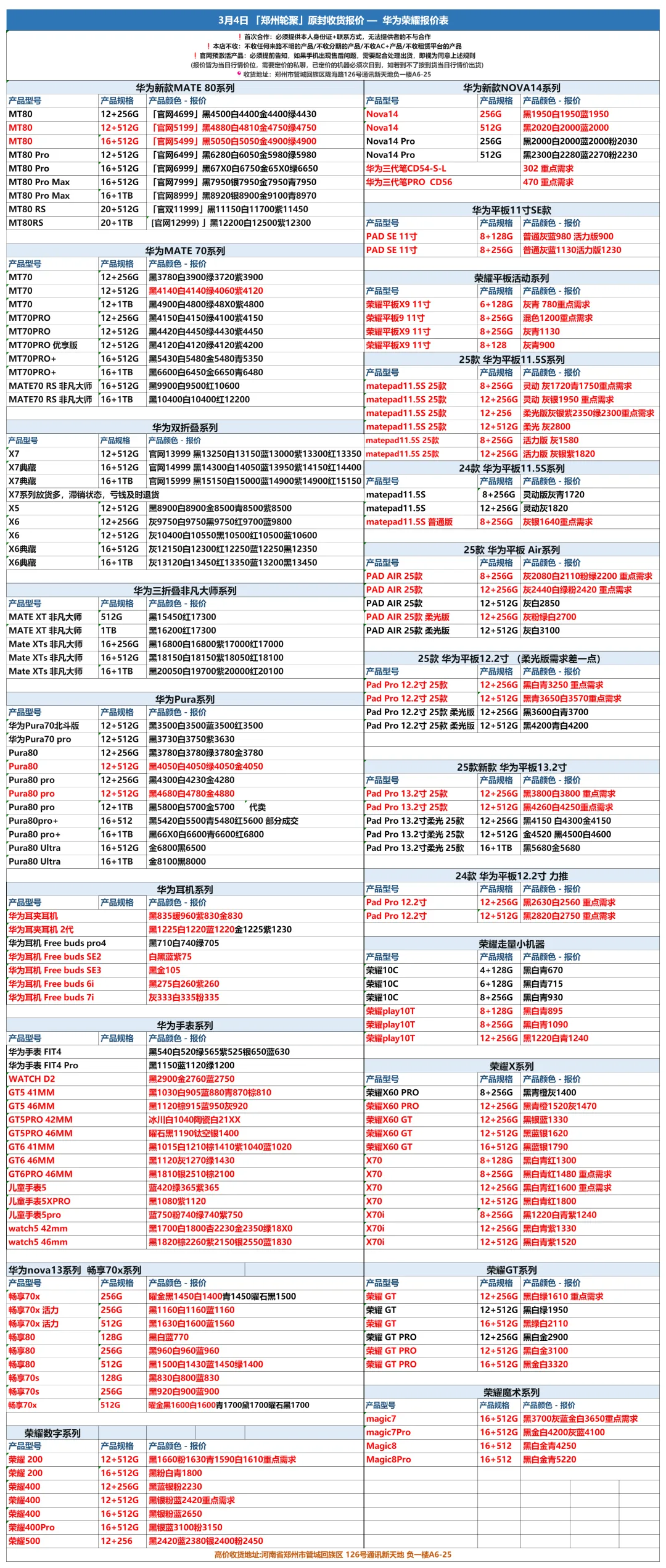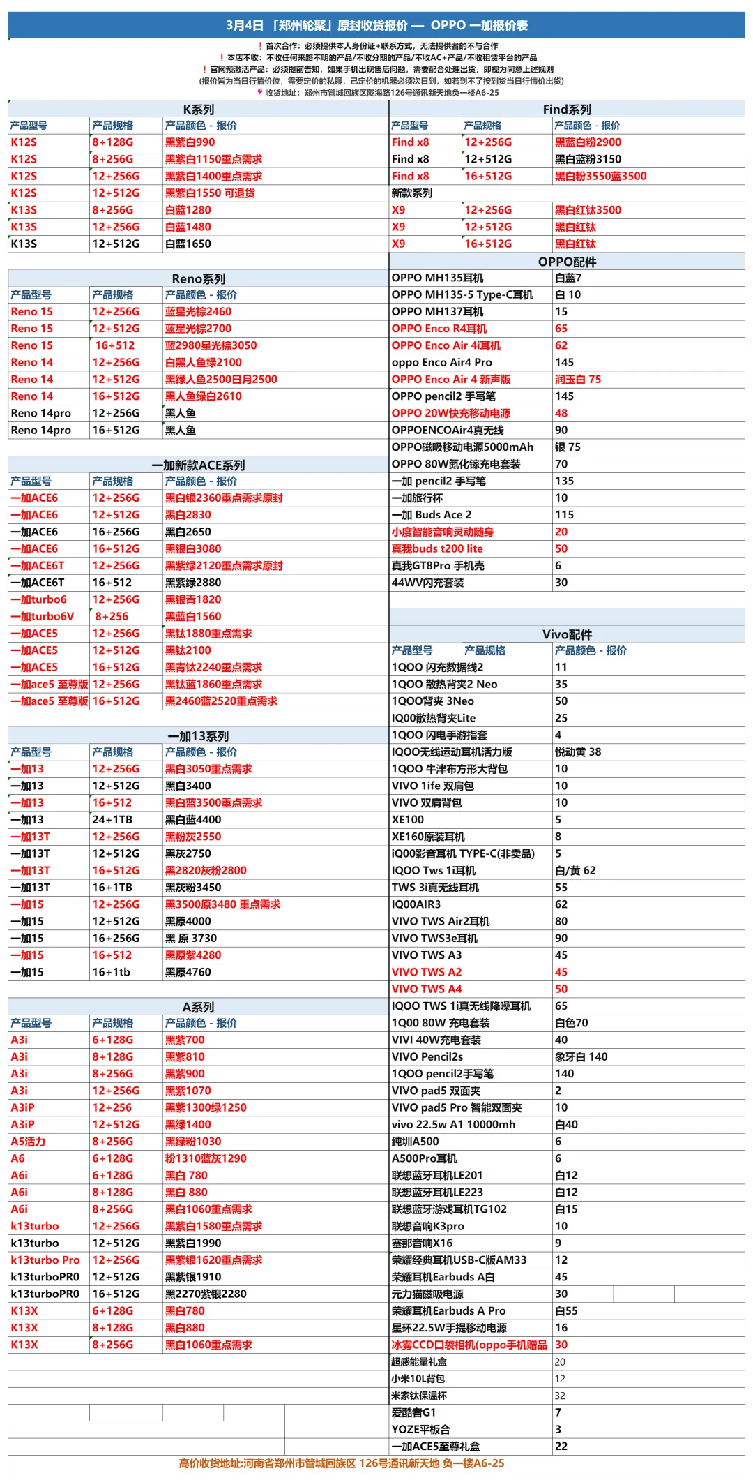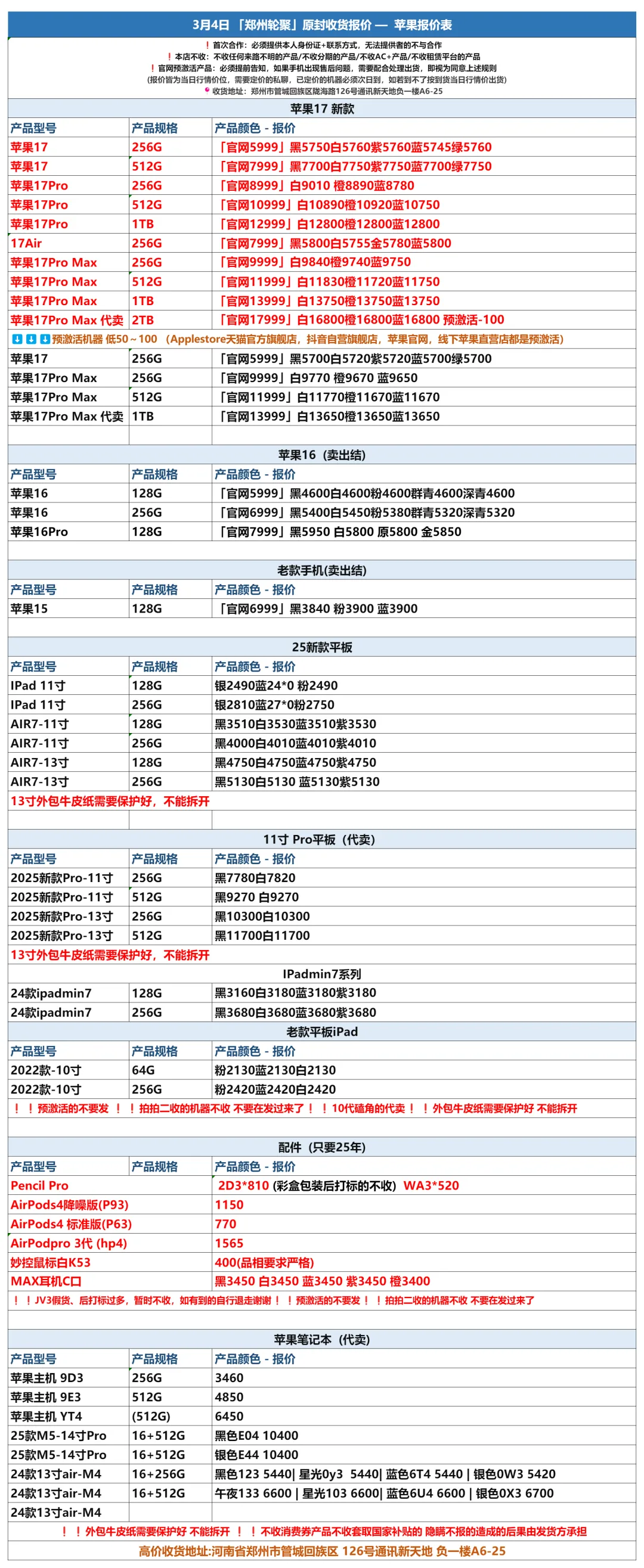 >郑州轮聚通讯 2026年3.4日数码报价更新
