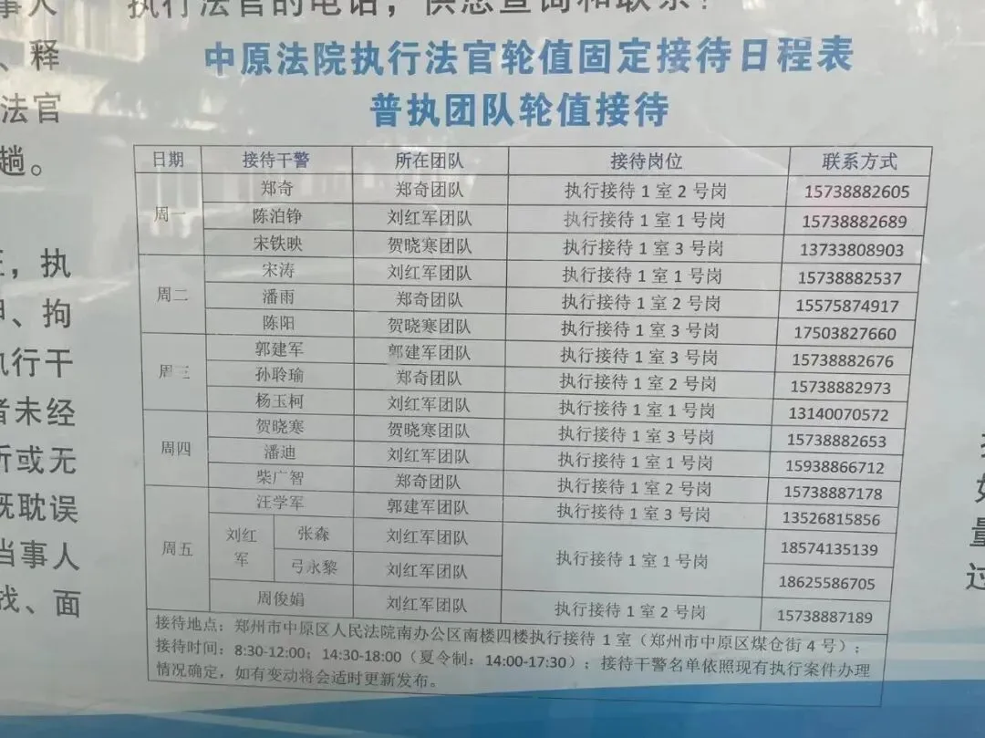 郑州市中原区法院关于向社会公布审判办案团队联系方式的公告