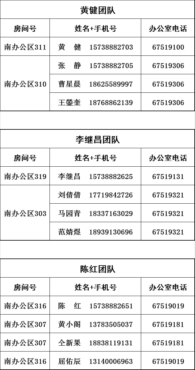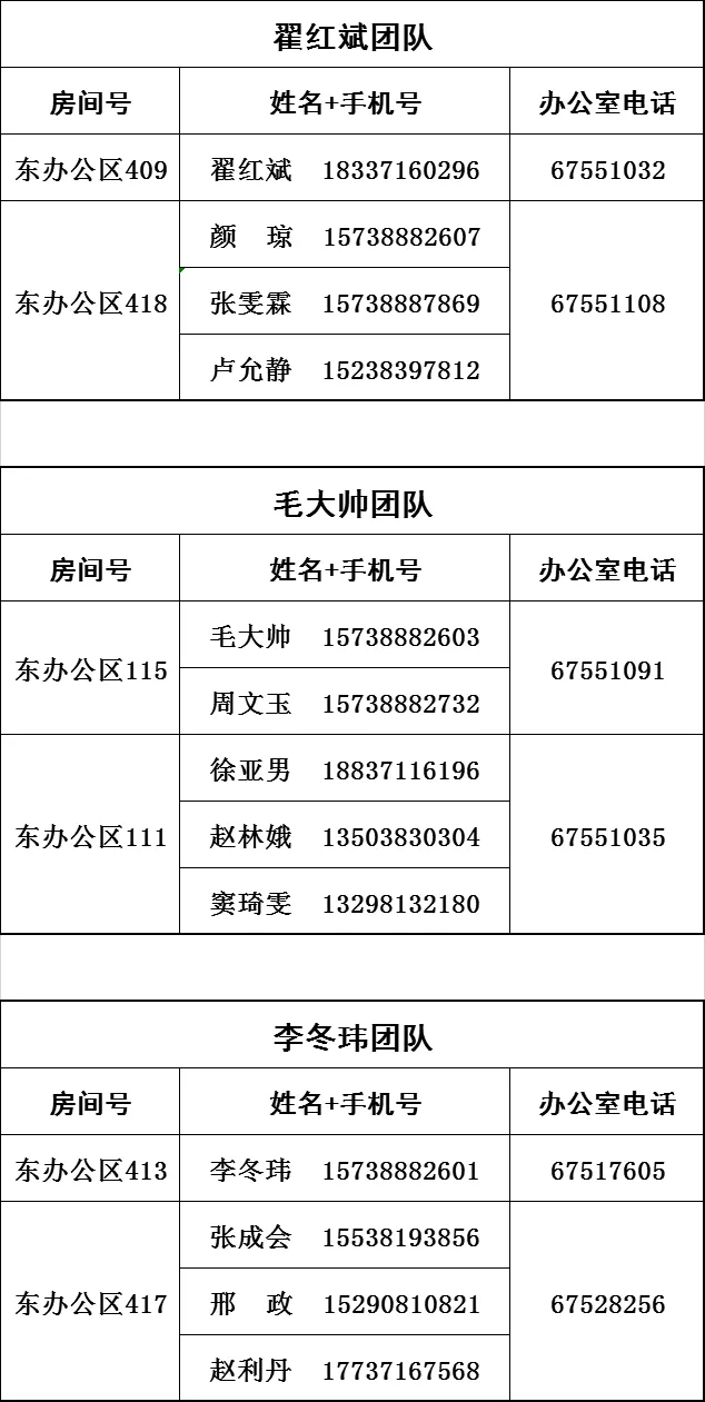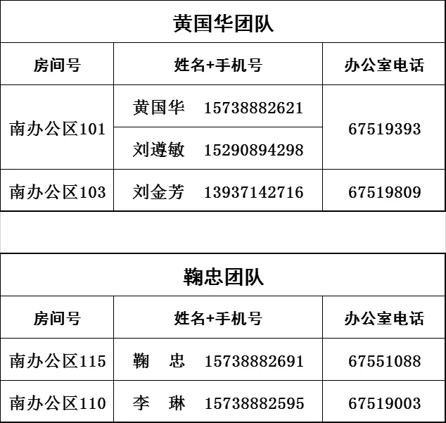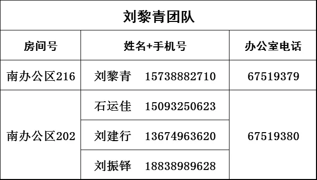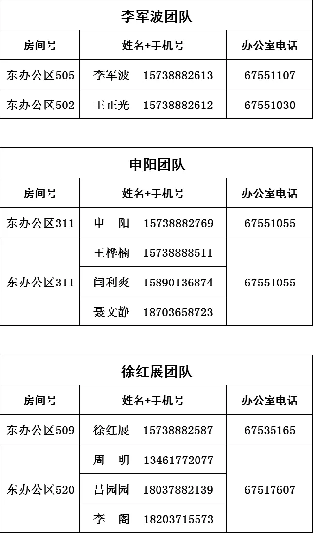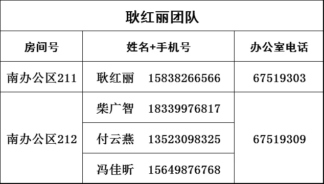 | 郭建军 | 团队长 | 037156809552 | 15738882676 |