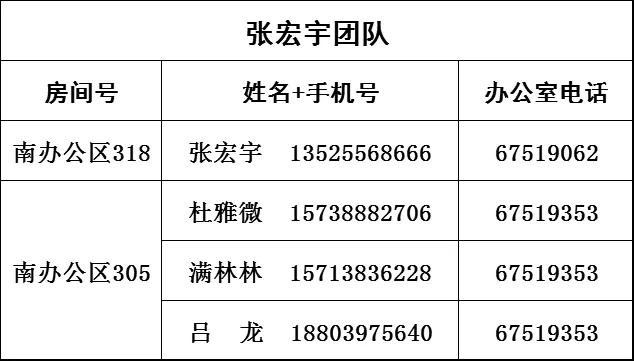 | 张膺利 | 机关党委副书记 | 037167551558 | 15738882686 |