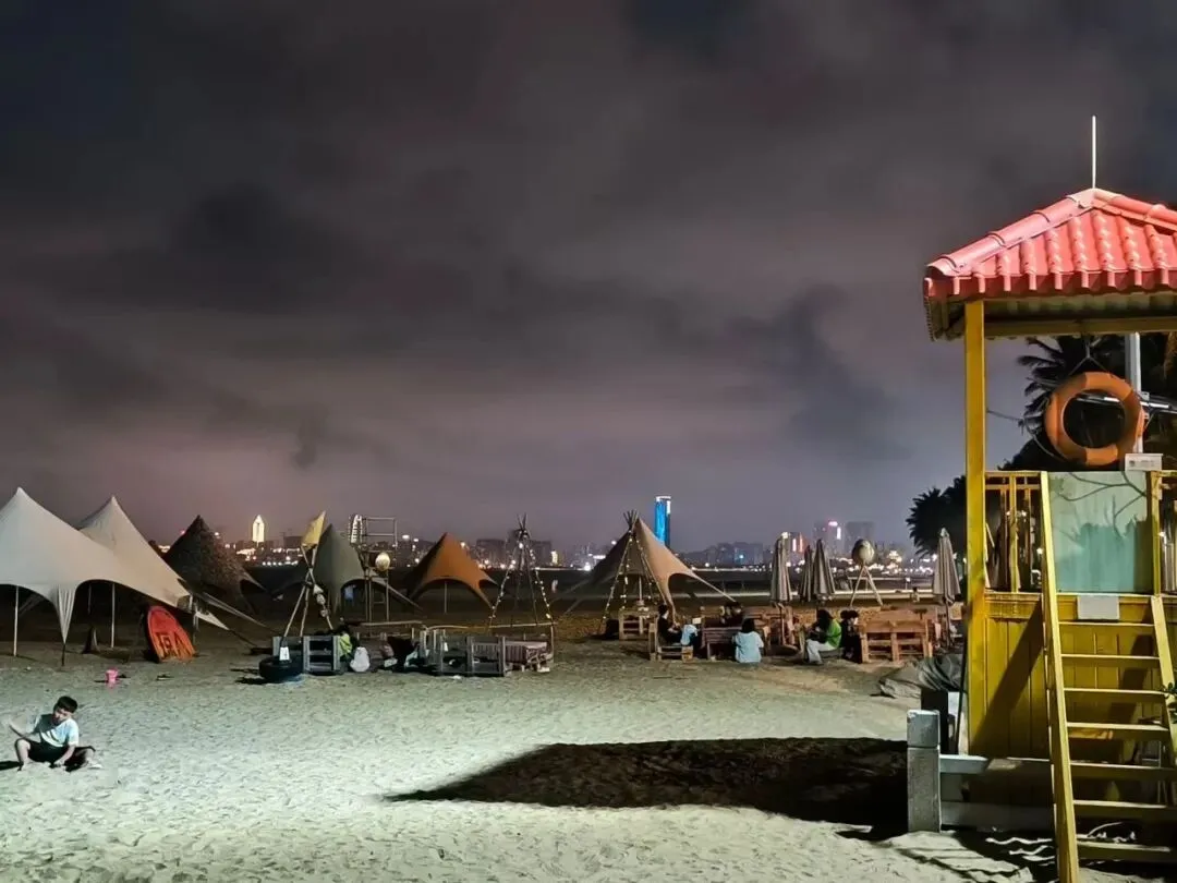 为了实现我的诺言,今天夜晚陪孩子在沙滩玩儿,咱也算找到了点育儿窍门: