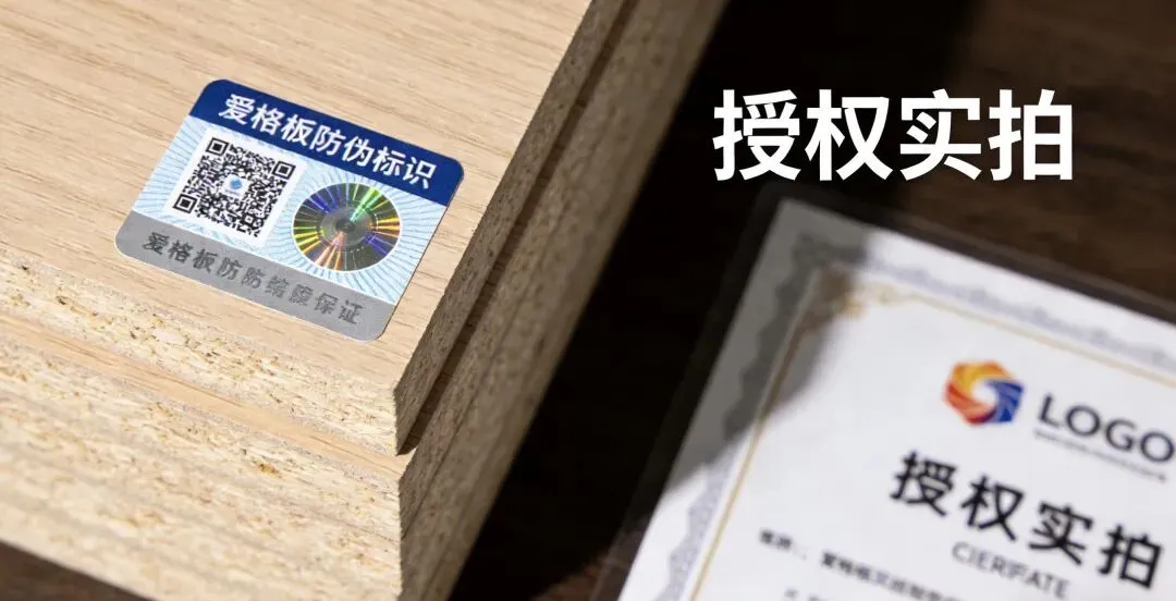 侧边激光防伪标,紫光灯可显EGGER标识;正品密度高,激光光斑不散开。