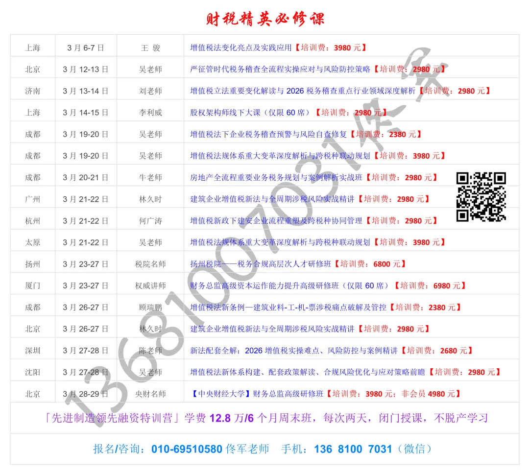 【北京.3月26-27日】建筑企业增值税新法落地合规管理与全周期涉税风险管控
