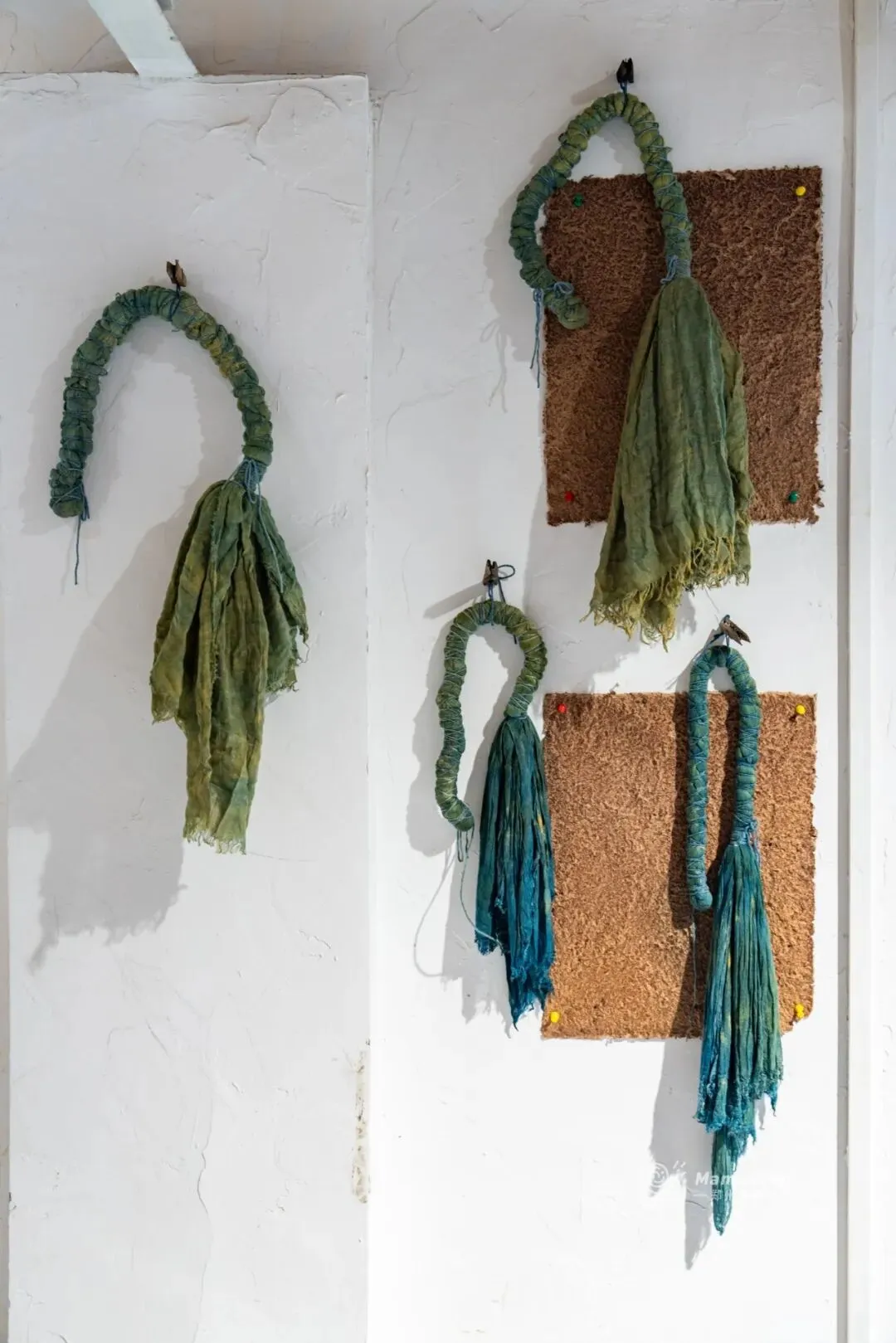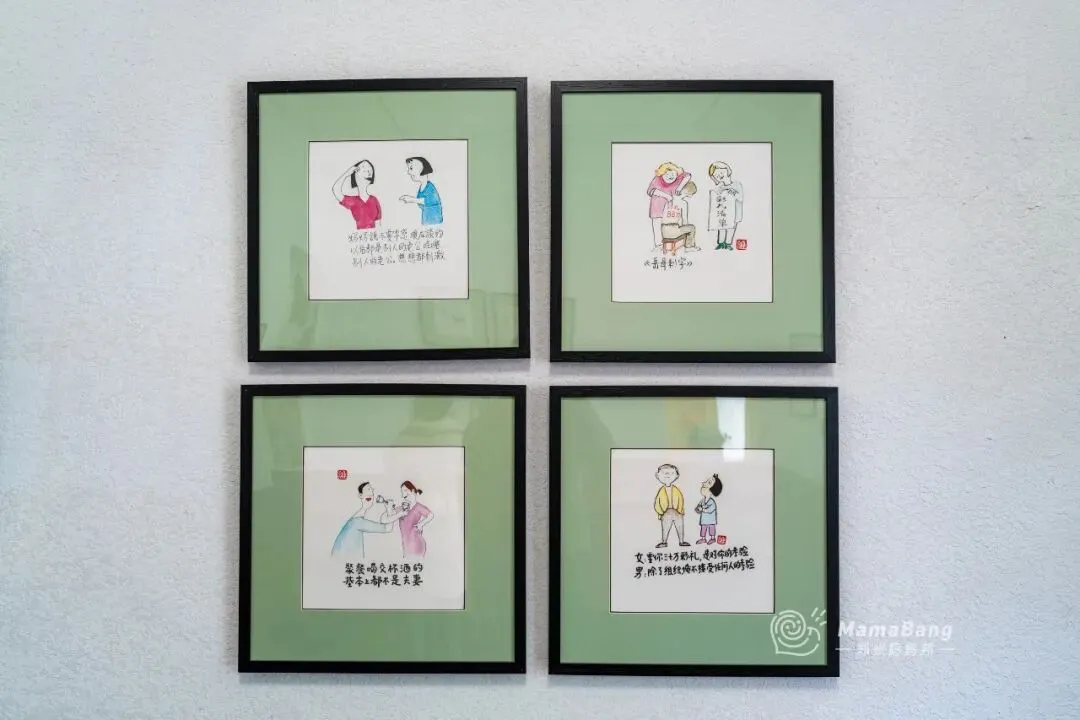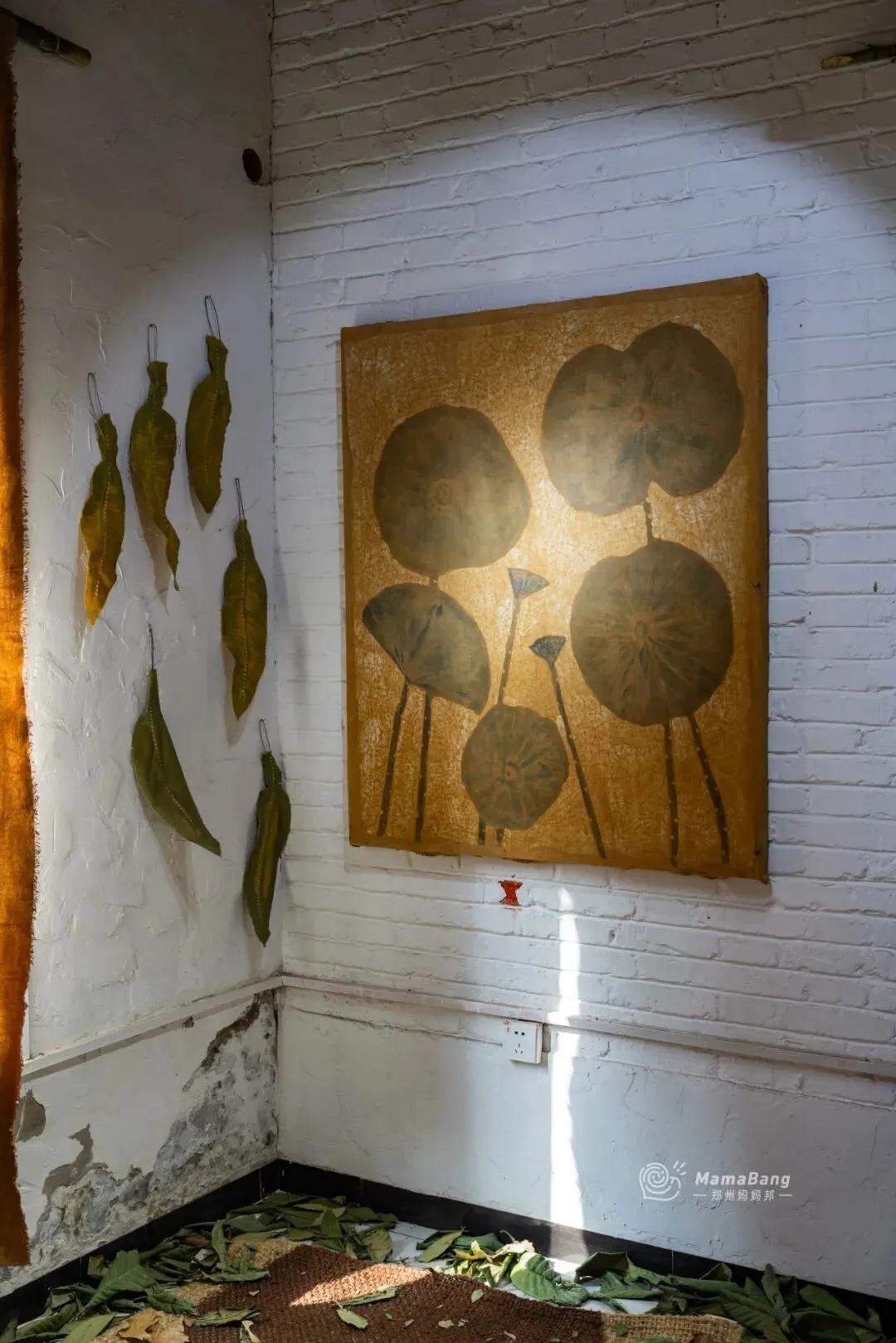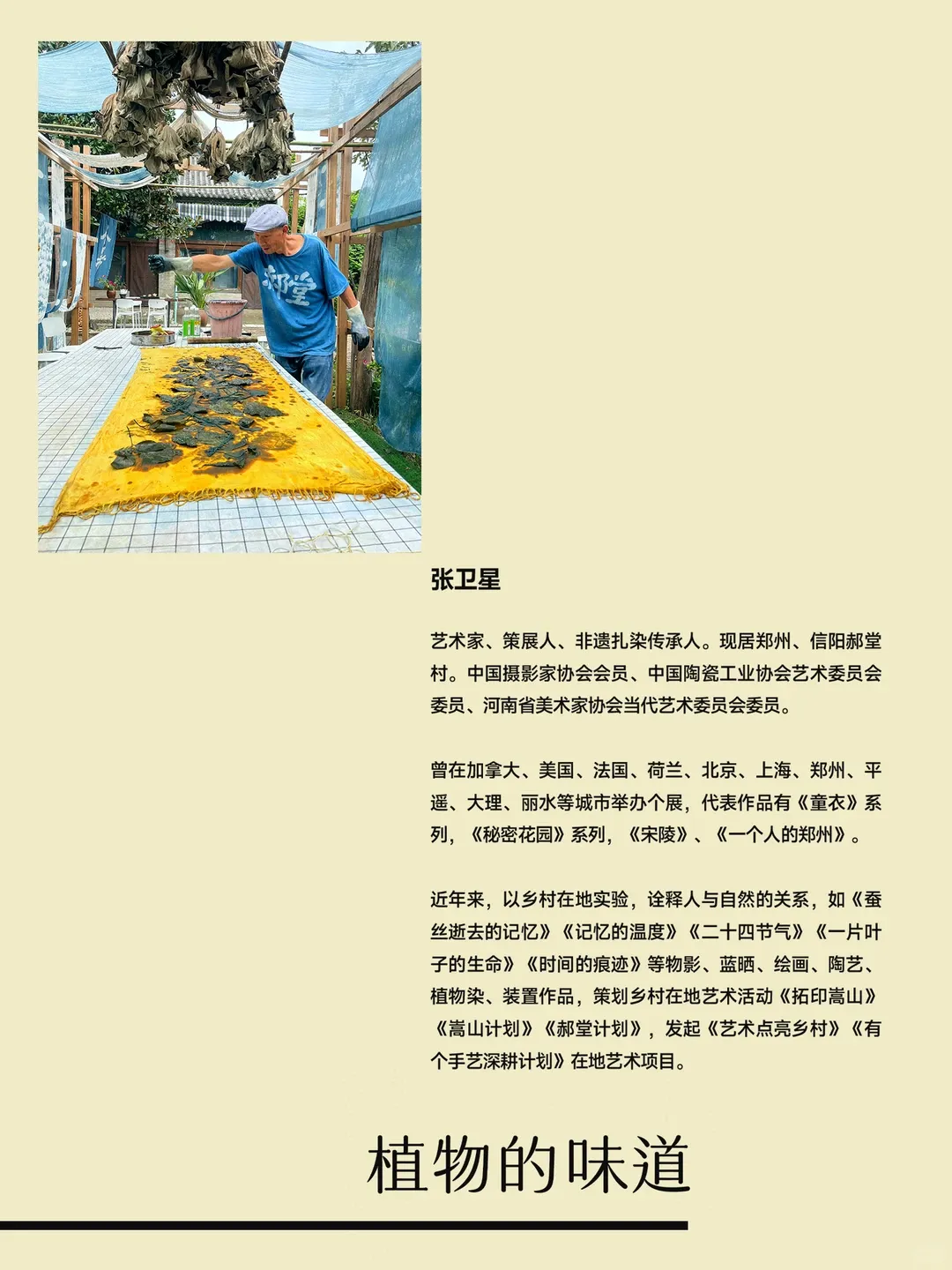 偶然间在小某书刷到有人分享《植物的味道》,看起来很有趣,第二天就决定去看看。展馆在2期,独立的小门栋,推开门进去的瞬间就懂了为什么起名叫“植物的味道”。气味来自画布上的染料,是柿漆、靛蓝、黄栌等等天然植物,经过阳光与时间的催化,让叶片、植物等等的轮廓和肌理,直接拓印在织物上。每一缕纹理都是大自然的印迹,是自然和手工相遇时的偶然状态。相比精雕细刻的雕塑、一笔一画勾勒的画作,植物染布它不算完美,有晕染的痕迹,还有轮廓不规整的毛边,都是染色过程中留下最鲜活的注脚。策展人张卫星是非遗扎染传承人,同时也是一名艺术家。他把摄影中的“物影成像”原理融入进植物染色工艺,形成个人风格鲜明的“物影染”手法。展不大,只有一个房间,草草几分钟就能看完,如果单纯冲着一个展览来大概会觉得有点失望。比较适合连带着周围转转,我们在这儿还发现了几个同样小而精美的免费展。曹伟的漫画展,借着漫画讲点职场上不敢讲的真心话