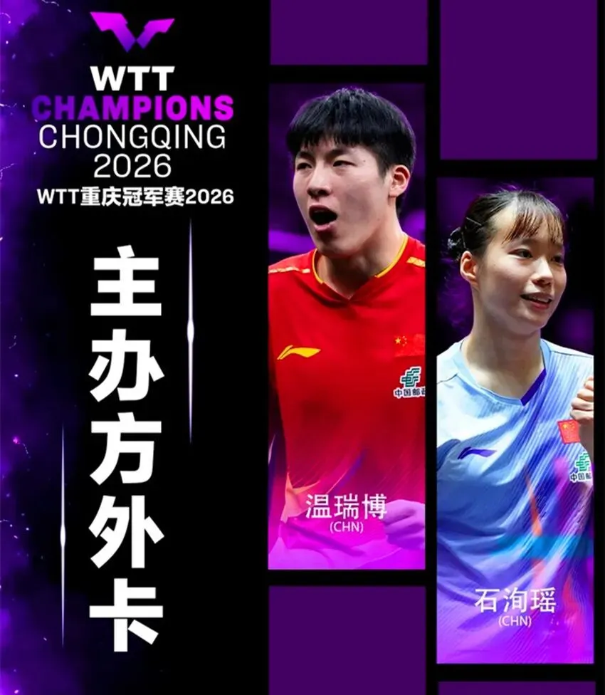 WTT(世界乒乓球职业大联盟)重庆冠军赛2026主办方昨天公布外卡及WTT提名名单。河南省乒乓球队队员、郑州小伙温瑞博获参赛外卡,他将身披国家队“战袍”出战WTT本站赛事。