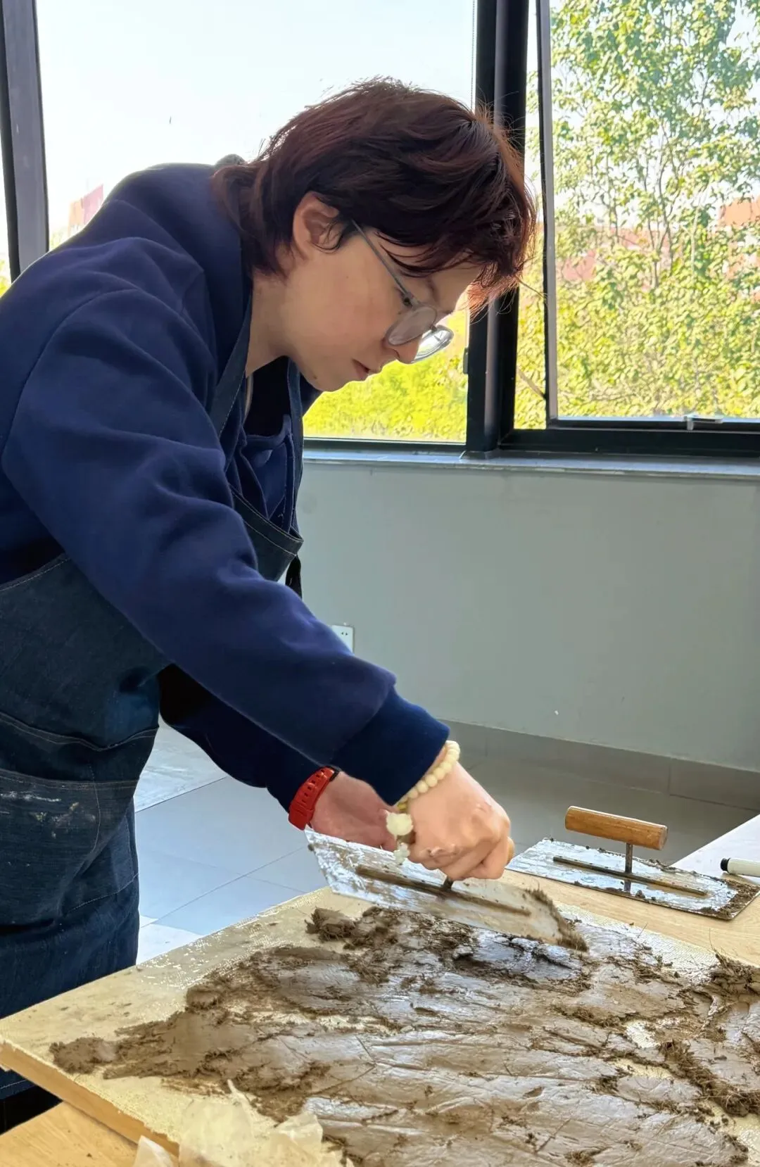 ▲制作壁画泥板