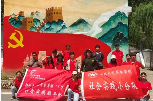 这份在自然中沉淀的热爱,让吴子昊愈发懂得用画笔传递温暖与力量。每年暑假,他都会加入学院乡村振兴实践队,奔赴驻马店确山县、三门峡卢氏县等地,用斑斓色彩为乡村注入活力。他和同学们结合乡村特色,将乡村振兴、五星支部、绿水青山、家风家训等主题绘进墙绘,原本单调的墙面渐渐变成了承载乡愁与希望的风景。村里的孩子们常常好奇地围着模仿勾勒,这份被认可的温暖,让他深刻体会到:绘画不仅是自我表达的载体,更能成为连接情感、赋能的纽带。