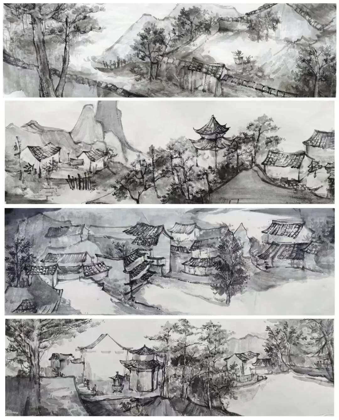 每次写生,他都带着画笔与积极探索的初心,和老师、同学一起,一次次走向自然深处,以写生的方式和不同的世界对话。秉持“外师造化,中得心源”的理念,他的足迹遍布太行山的险峻峰峦、九华山的云雾林海、江西婺源的白墙黛瓦。在太行山,他遭遇过夏季突如其来的暴雨;在陕北,他历经了干燥的风沙与强烈的阳光;在九华山,他承受过蚊虫的叮咬。但这些在野外的日晒雨淋、徒步跋涉,最终都化作笔墨间的鲜活灵气。