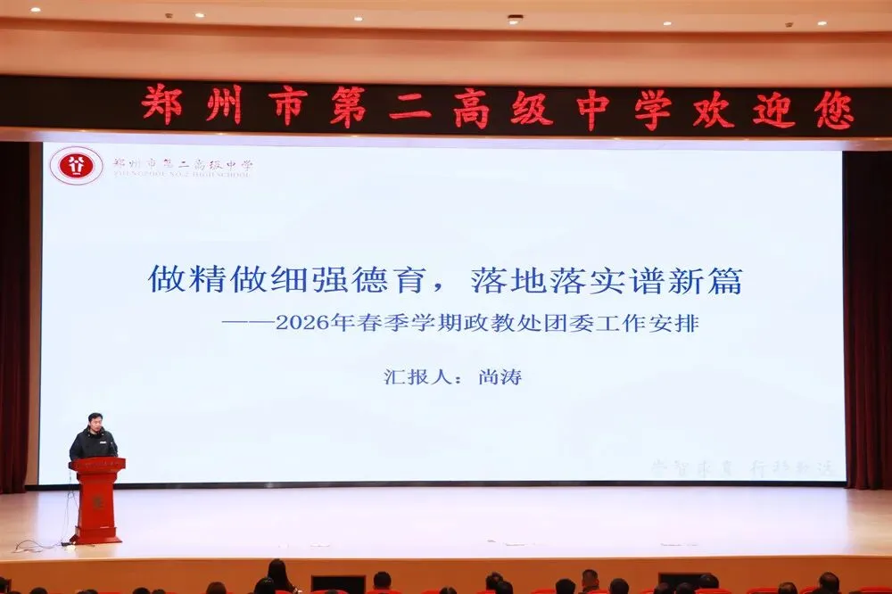 3月2日,郑州市第二高级中学召开2025-2026学年下期骨干教师会,年级长、教研组长、备课组长及正副班主任参加会议,校长韩光,副校长蒋立春、黄龙,以及相关干部出席会议。教务主任闫广建、教科研主任谢爱萍、政教主任尚涛依次作工作统筹,明确本学期教学、教科研、德育各条块工作安排,为新学期学校发展凝心聚力、夯实基础。大家齐聚一堂,以标杆之姿扛起育人使命,共赴新学期教育教学新征程。