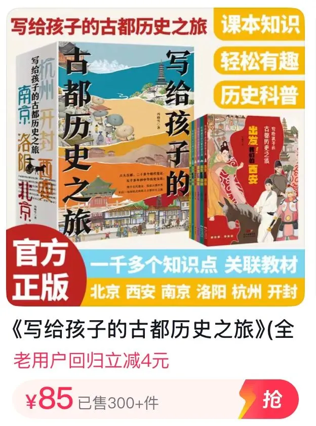 直播间一夜抢光300+套现货,一套书 = 6城古都游记 + 文史百科 + 中国通史