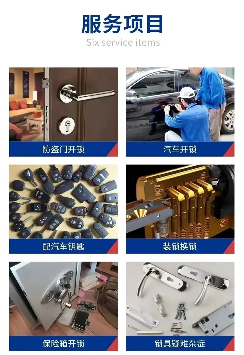 🔑 防盗门开锁(A级/B级/C级锁芯)🔑 指纹锁/密码锁开启与维修🔑 换锁芯 · 锁具升级🔑 保险柜开锁🔑 汽车开锁🔑 商铺、办公室门锁维修🔑 24小时紧急开锁服务